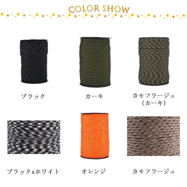 ロープ パラコード 4mm 100m 手芸 ハンドメイド キャンプ用品 ひも 7芯 カラフル ミリタリー タープロープ ガイロープ キャンプ ロープ アウトドア テント タープ 張り綱 屋外 野外 クラフト 防災グッズ パラシュートコード ブレスレット 紺色 ネイビー 緑 迷彩 黒 グリーン