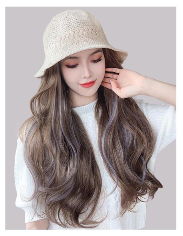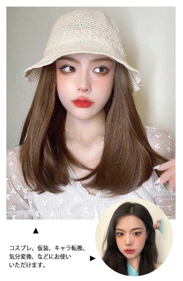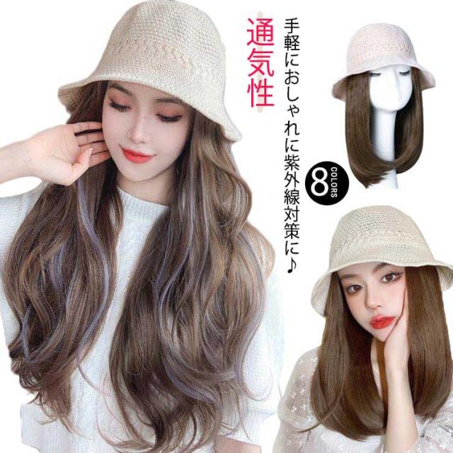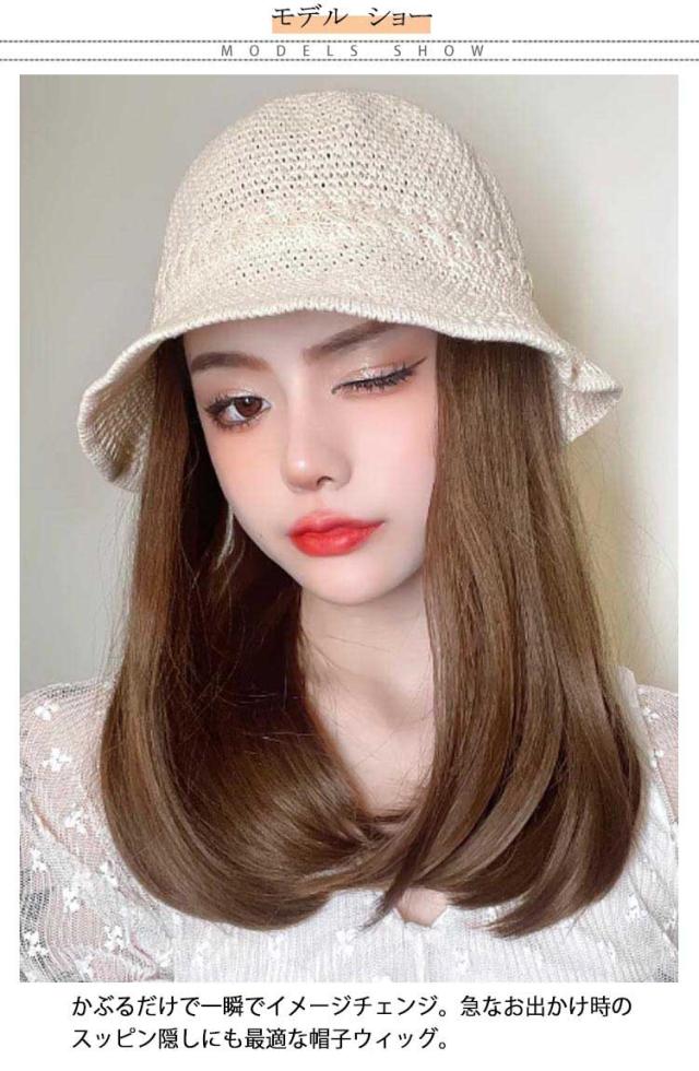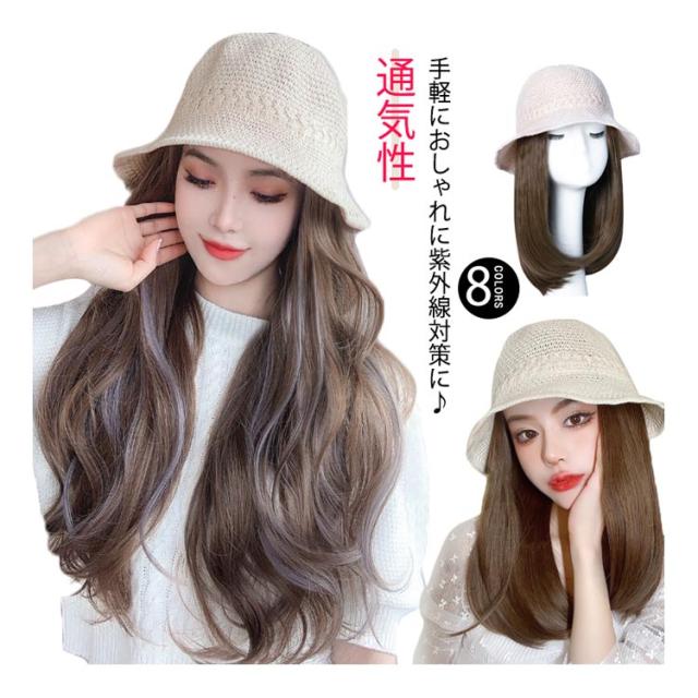 ストレート ウィッグ付き かつら ボブ 帽子ウィッグ ウェーブ 毛付き帽子 可愛い 髪付き 医療用 帽子ウィッグ 帽子 かつら付き バケットハット 送料無料 春夏 通気性 つば広 セミロング ロング