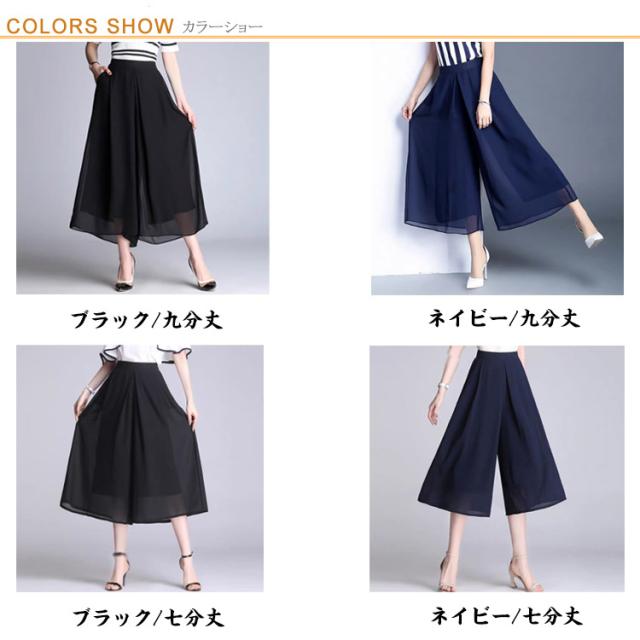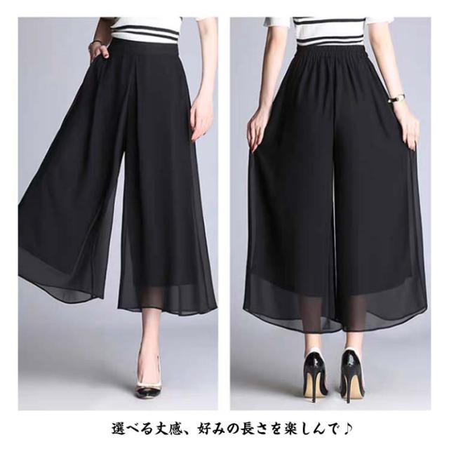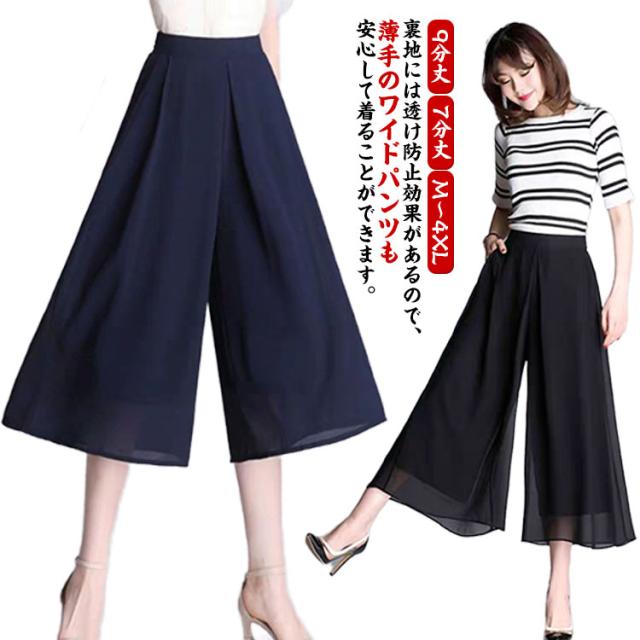 ワイドパンツ シフォンパンツ 9分丈 7分丈 シフォンパンツ レディース ガウチョパンツ シフォン 美脚 裏地付き 大きいサイズ パンツ マキシ丈 体型カバー ゆったり スカーチョ リラックスパンツ ワイド 薄い 通気 送料無料