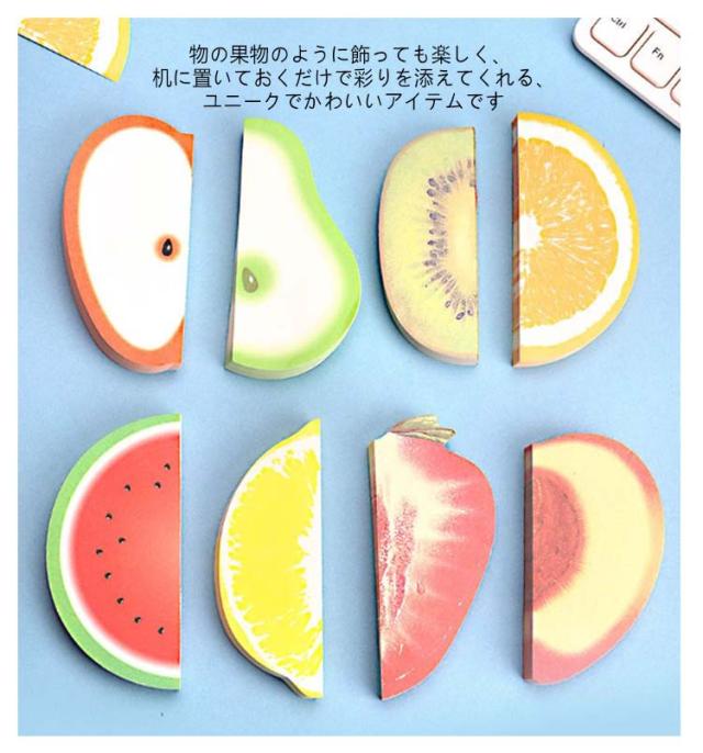 | メモ帳としてはもちろん、見ても楽しい3Dフルーツメモ。 本物のフルーツのようにアミもヘタもついてます! 物の果物のように飾っても楽しく、 机に置いておくだけで彩りを添えてくれる、ユニークでかわいいアイテムです♪ 遊び心満点の楽しいメモ帳♪プレゼントにもぴったりなおもしろ文房具として大人気です。 メッセージを書いたり、スタンプを押したり、マステと組合せると更におしゃれ!手帳デコ、ラッピングやコラージュにも一役買います! | |
