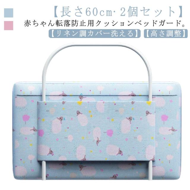 ベッドガード クッション 2個セット ベッドフェンス 赤ちゃん ベビー 転落防止 落下防止 クッションベッドガード ハイタイプ ベッド サイドパット サイドガード ベッド柵 寝返り防止 ケガ防止 柔らかい リネン調 カバー 洗える 高さ調整可能 アニマル柄