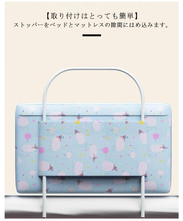 | 赤ちゃん転落防止用クッションベッドガード。【長さ60cm?2個セット】【リネン調カバー洗える】【高さ調整】 ベッドから転がり落ちないように赤ちゃんの安全対策として役立つクッションベッドガード。 【クッション素材】クッションの素材はスポンジ。程よい弾力性があるので、赤ちゃんがぶつかってもケガをする心配はありません。 【洗えるリネン調カバー】クッションのカバーは取り外しが可能です。汚れてしまってもすぐに洗濯できるので、いつでも清潔に使用することができます。程よい弾力のスポンジで赤ちゃんがぶつかってもケガの心配はありません。 【高さ調整】ストッパーの高さは5段階で調整できます。ベッドの高さに合わせてご使用いただけます。 【取り付けはとっても簡単】ストッパーをベッドとマットレスの隙間にはめ込みます。 | |