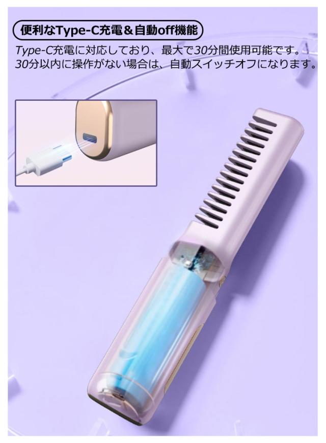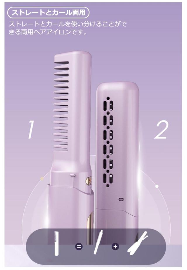 | 【最新版】 【便利なコードレス】 ファッショナブルなコードレス設計とミニサイズでヘアスタイリングをらくらくにできます。 【ストレートとカール両用】 ストレートとカールを使い分けることができる両用ヘアアイロンです。 【3段階温度調節可能】 160度、180度、200度の3段階調節機能で、毛質に合わせて温度調整できます。160℃:前髪、短髪│180℃:細毛、柔毛│200℃:髪が硬い、多い。 【完璧な加熱機能】 プロ仕様のセラミックプレートは熱伝導がよく、短時間でツヤサラに仕上がります。 【髪を傷まない】 使用中に毛が引っ張られたり傷んだりする心配がなく、より滑らかで滑らかな使い心地を提供します。 【便利なType-C充電&自動off機能】 Type-C充電に対応しており、最大で30分間使用可能です。30分以内に操作がない場合は、自動スイッチオフになります。 【軽量】 僅か130g超軽量なので、さまざまな髪型を手軽に作ることができます。 【携帯便利】 コンパクト&軽量だから部活、ジム、旅行、オフィスなど家以外でも持ち運びに便利! | |