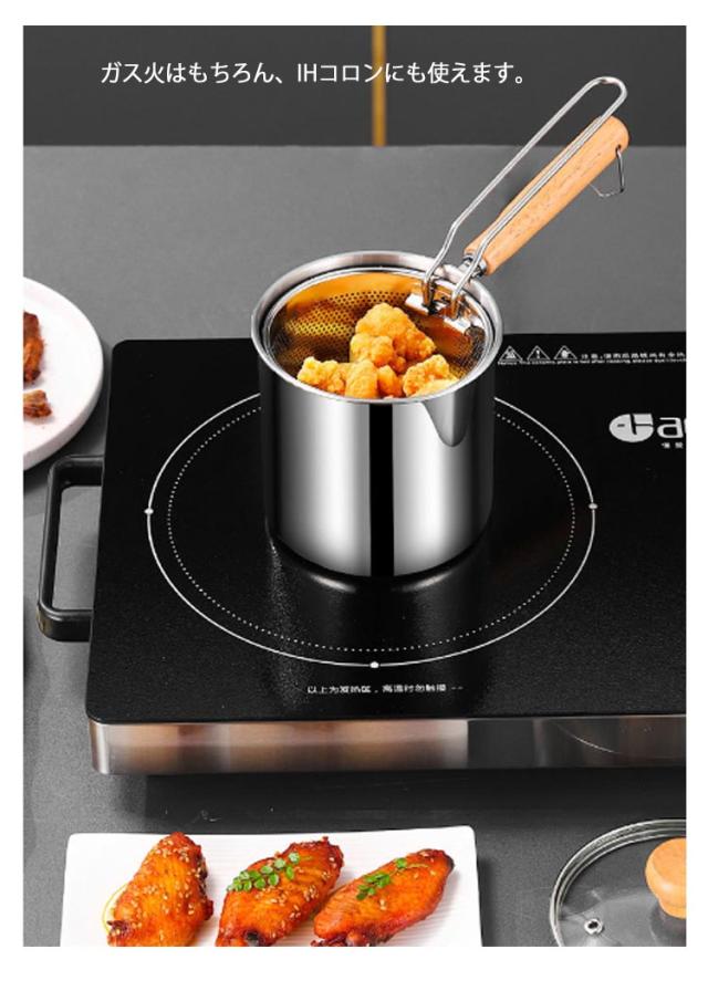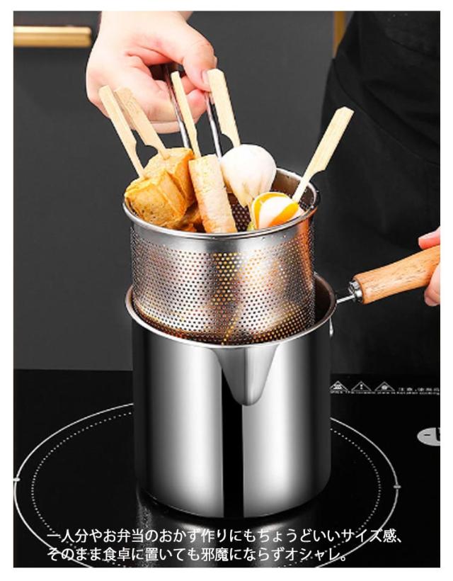 これ1つで7役 串揚げポット 深型 片手鍋 揚げ物用鍋 フライヤーポット 蓋付き ストレーナー付 マルチポット ステンレス鍋 12.5cm ステンレスポット 天ぷら鍋 揚げ鍋 オイルポット IH ガス 対応 ケトル 小型フライヤー 揚げポット 一人暮らし