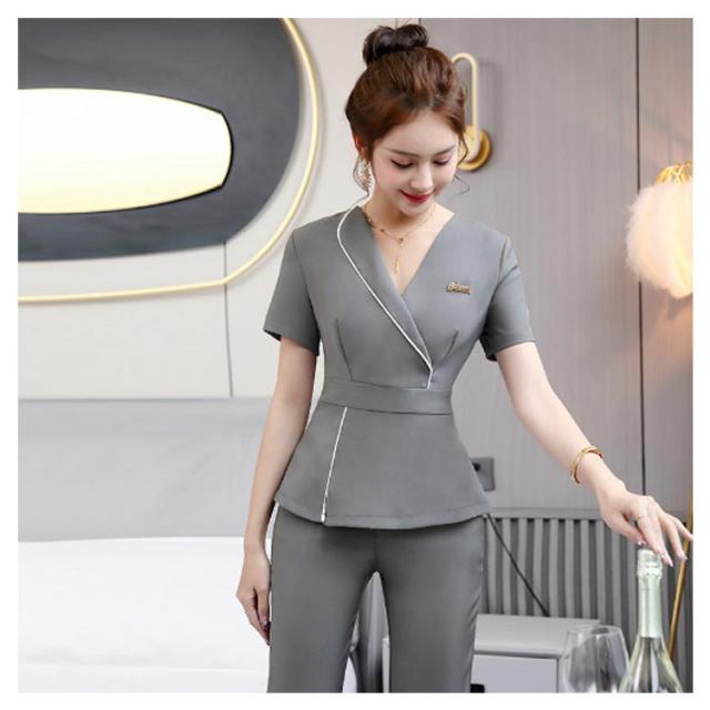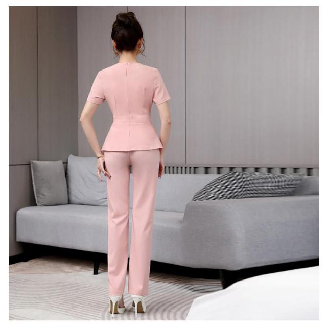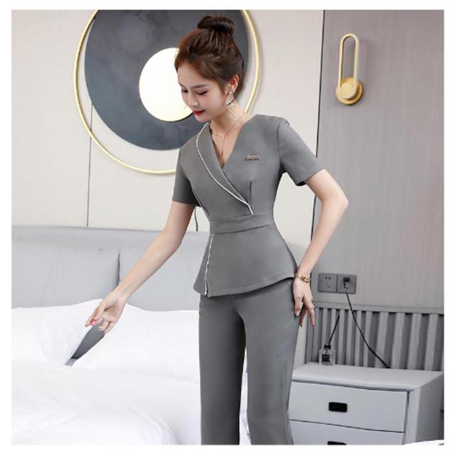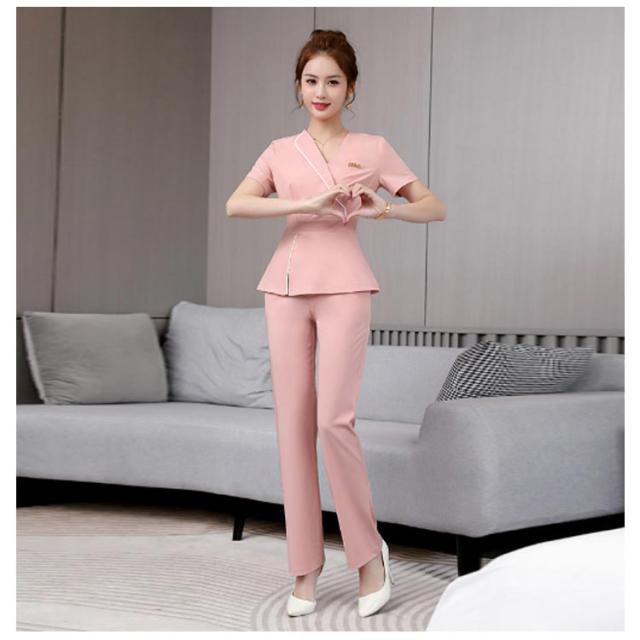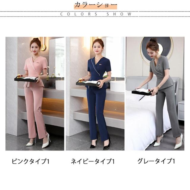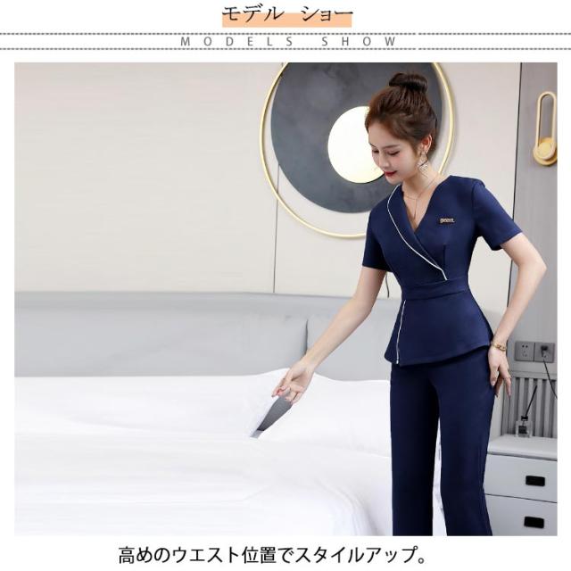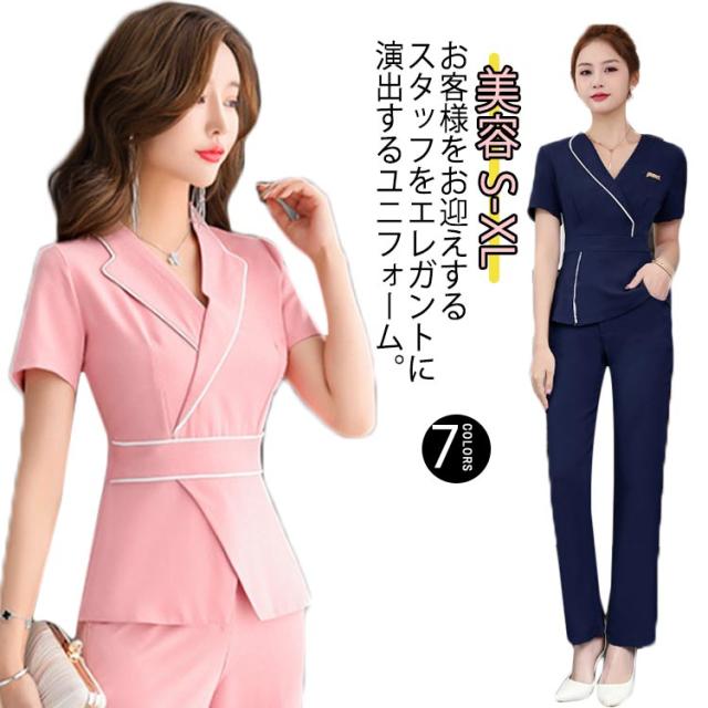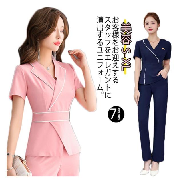 エステ ユニフォーム 半袖 サロン通勤 レディース 制服 春 夏 パンツセット クリニック ネイル 美容 サロン 歯科衛生士 マッサージ 制服 韓国 制服 上下セット 送料無料 作業服 夏服 エレガント