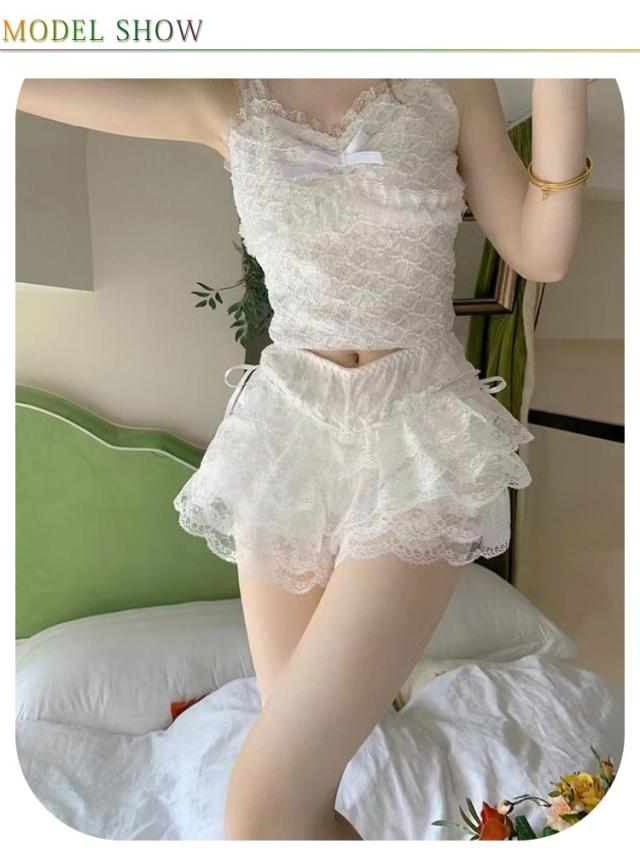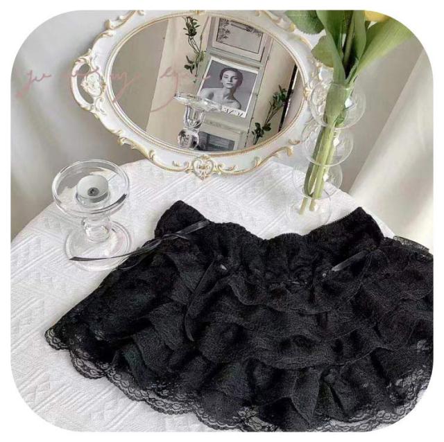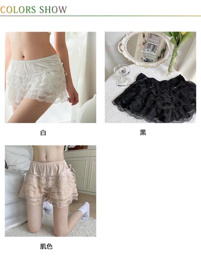 総レース インナーパンツ ショーツ スパッツ 5段 フリル ペチコート リボン 1分丈 下着 ペチパンツ ショートパンツ ドレス スカート 透け防止 レース シフォン キュロット ペチパン ホットパンツ ウエストゴム ダンス 衣装 ロリター コスプレ