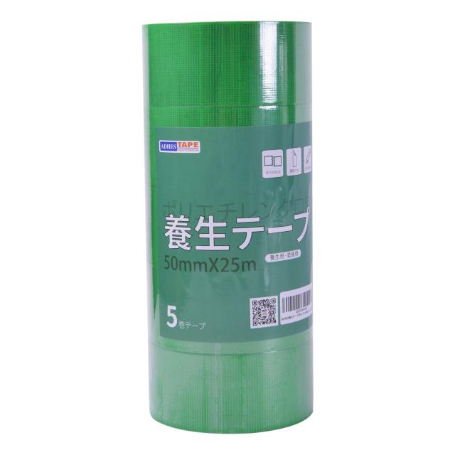 【 限定ブランド】ADHES 養生テープ 緑 ガムテープ はがせる 台風 窓ガラス用 50mm?25m 5巻入り (YB16-弱粘着)