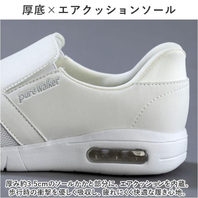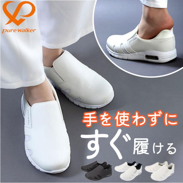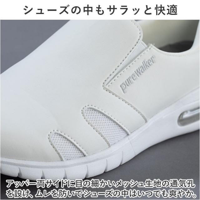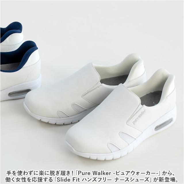 ピュアウォーカー ナースシューズ 通販 pure walker pw0552 スリッポン 紐なし スニーカー スライドフィット ハンズフリーシューズ 抗菌 防臭 医療現場 病院 介護 脱ぎやすい 履きやすい 通気性 クッション性 ソール ウォーキング オフィス