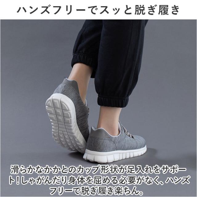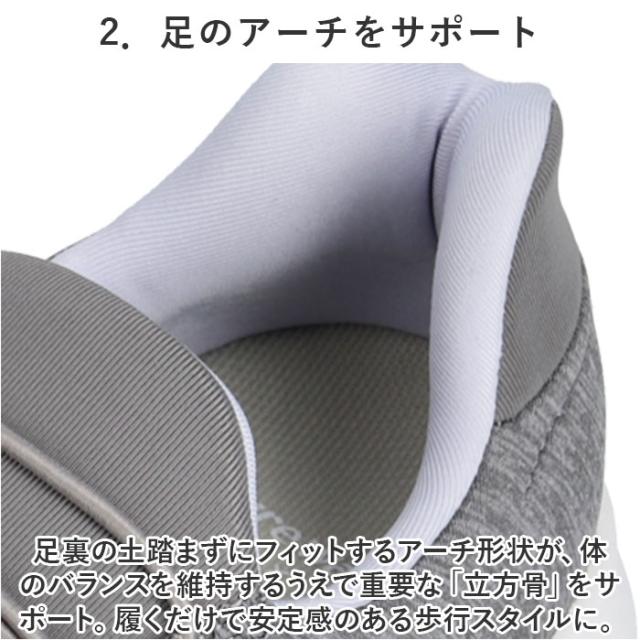 | 商品説明 | ・脱ぎ履きスッと!姿勢もスッと!働く女性を応援する「Pure Walker -ピュアウォーカー-」から、「Slide Fit ハンズフリーシューズ」が新登場。 【話題の Slide Fit シリーズ】 ・つま先がスッと入って、脱ぐときもサッと手間取らない!「Slide Fit -スライドフィット-」は、手を使わずに楽に脱ぎ履きできるシリーズ。 【ハンズフリーでスッと脱ぎ履き】 ・滑らかなかかとのカップ形状が足入れをサポート!しゃがんだり身体を屈める必要がなく、ハンズフリーで脱ぎ履き楽ちん。 【ふわっと軽い履き心地】 ・シューズ片足分の重量はわずか約180g。履いていることを忘れてしまうほどの軽い履き心地で、軽快なフットワークを実現(※1)。(※23.5cmサイズの商品、付属のインソールの重量を含む、片足分の計測重量です。) 【BMZインソール・4つの嬉しい効果】 ・「Slide Fit」シリーズは、歩くだけで嬉しい4つの効果が期待できるユニークな機能付きインソール「BMZインソール(R)」を搭載。 【1.歩きながらエクササイズ】 ・足指の付け根部分に適度なふくらみを持たせたインソール構造により、足指が自由に動き、足の運動効果がアップ!歩きながら、美しい脚のラインにエクササイズ。(※2) 【2.足のアーチをサポート】 ・足裏の土踏まずにフィットするアーチ形状が、体のバランスを維持するうえで重要な「立方骨」をサポート。履くだけで安定感のある歩行スタイルに。 【3.キレイな姿勢をキープ】 ・足裏のアーチをしっかりつくることで身体のバランスを整え、キレイな姿勢もキープ。シューズを履いて歩けば、背筋も自然にスッと伸びる! 【4.歩行による肩腰の疲労軽減】 ・今までの歩行スタイルを正しいバランスに導くことで、身体の緊張を緩和し、肩・腰の疲れが軽減(※3)。お買い物や散歩など普段のちょっとした歩行から健康に。 【紐がほどけない、ゴム紐タイプ】 ・足の甲に優しくフィットするゴム紐タイプだから、くつ紐がほどける心配がなく、結びなおす手間もないのが嬉しいポイント。 |
