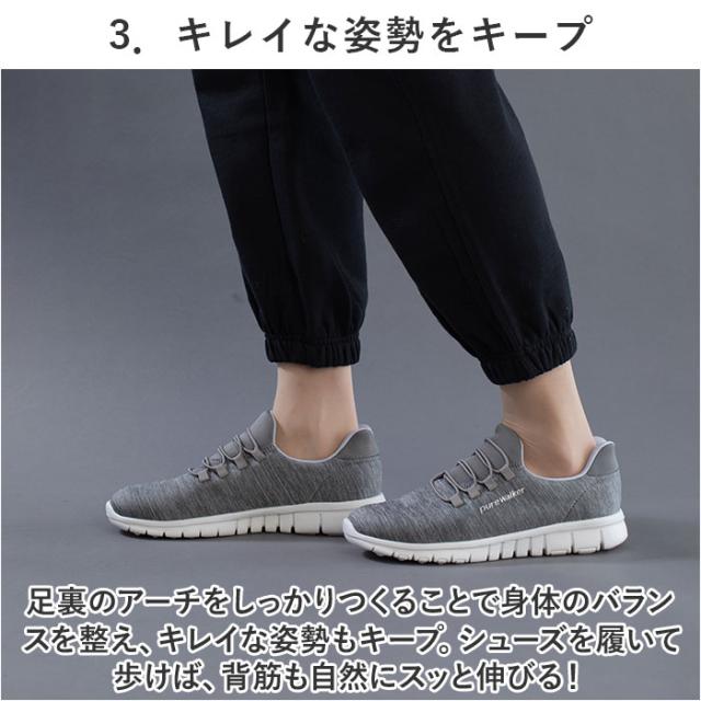 | 注意点 | 【医療や介護の現場に最適】 ※滑り止めの凹凸が刻まれたアウトソールが、フラットなフロアーでもしっかりとグリップ。屈曲性抜群で動きやすく、看護師さんや介護士さん用のシューズにぴったり。 【普段使いにもオススメ】 ※カジュアルな服装にもすんなり馴染むメランジ調のアッパーと同系色のゴム紐を合わせた、シンプルなカラーバリエーション。サイドのPureWalkerのシルバーロゴが、控えめなワンポイント。 ※1.シューズ片足分の重量はわずか約180g。履いていることを忘れてしまうほどの軽い履き心地で、軽快なフットワークを実現。・・・(※23.5cmサイズの商品、付属のインソールの重量を含む、片足分の計測重量です。) ※2.美しい脚のラインにエクササイズ。・・・※脚痩せという点で、効果が期待できます。 ※3.身体の緊張を緩和し、肩・腰の疲れが軽減。・・・※肩・腰のコリ、緊張度の緩和に有用。 ※長時間日光にあたったり、摩擦、水漏れなどによる色落ちや色移りすることがあります。 ※お取り扱いの際は、商品やパッケージなどに記載されている品質表示、アテンションタグ、ご使用上の注意事項などを必ずご確認下さい。 ※本来の目的以外にはご使用にならないで下さい。 ※カメラやモニターの性質により、画像と実物の色の違いがある場合がございますのでご理解願います。 |