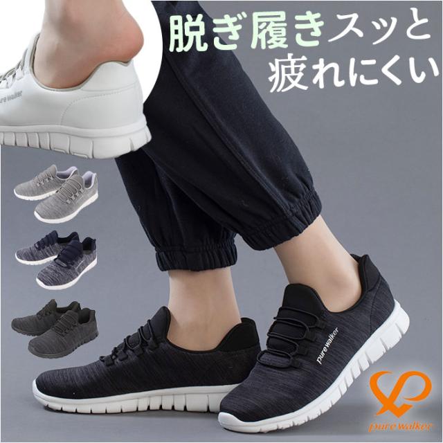 ピュアウォーカー スニーカー レディース 通販 pure walker pw1501 スライドフィット シューズ 疲れにくい 運動靴 脱ぎやすい 履きやすい 安定感 歩きやすい オフィスシューズ ウォーキング シンプル ローカット 婦人靴 エクササイズ