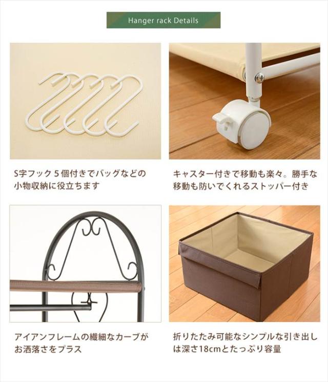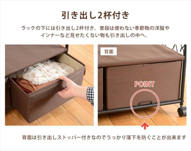 ハンガーラック キャスター付き 通販 KHR-3160 ハンガー ラック ワードローブ 洋服掛けラック ハンガー掛け クローゼット 引き出し付き 2杯 一人暮らし 衣類収納 シンプル おしゃれ 幅75×奥行35.5×高さ172cm 収納家具 インテリア