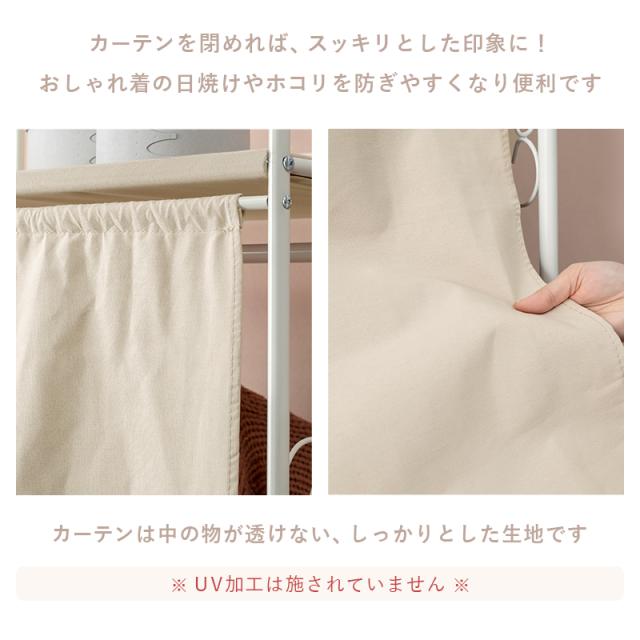 | 商品説明 | ・■組立式/■S字フック5ヶ付/■カーテン付 ・■キャスター付/■引出内寸:約幅32×奥行34×深さ18cm |