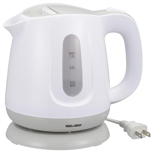 【 特 長 】 ● スイッチひとつでお湯が沸く ● 沸いたら自動で電源オフ、空焚き防止 ● 取り外して洗えるフィルター ● 湯沸かし時はランプ点灯 ● 最大容量1.0リットル ● 本体カラーはグレー