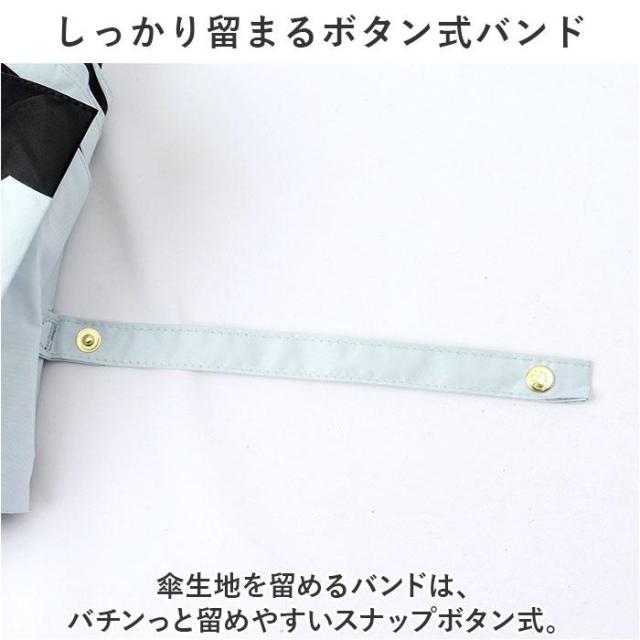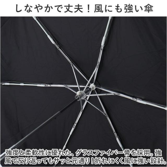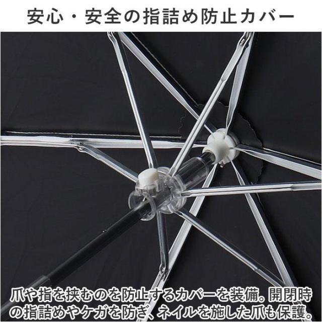 ブラックコーティング加工を施した、 晴雨兼用タイプ。おしゃれに持てる折りたたみ傘・親骨50cmサイズ。【遮熱遮光効果抜群で晴れた日の味方】遮光率&UVカット率99.9%以上、UPF50+!生地裏面にブラックカラーのポリウレタンコーティング加工済みで、日差しをガード。【体や荷物を雨からもガード】はっ水・防水加工も施されており、雨傘としても活躍。気候に合わせて使い分けOK。【いつでもどこでもイージーオープン】傘骨をポキポキ折る手間なく、スムーズに開閉できる手開きタイプ。【安心・安全の指詰め防止カバー】爪や指を挟むのを防止するカバーを装備。開閉時の指詰めやケガを防ぎ、ネイルを施した爪も保護。【しなやかで丈夫!風にも強い傘】強度と柔軟性に優れた、グラスファイバー骨を採用。強風で反り返ってもサッと元通り!折れにくく風に強い設計。【しっかり留まるボタン式バンド】傘生地を留めるバンドは、バチンっと留めやすいスナップボタン式。【スマートに持ち運べるサイズ感】軽量でスリムなフォルム。バッグに入れておきやすいコンパクトサイズ。【お気に入りをお出かけのお供に】大人も持ちやすい、落ち着きのある可愛さ☆豊富なバリエーションからお好みをチョイス!【持ち歩きやすい収納袋付き】スナップボタンでまとまる、傘生地と同じデザインの収納袋が付属。いつもカバンに入れておけば、強い日差しも突然の雨もへっちゃら!