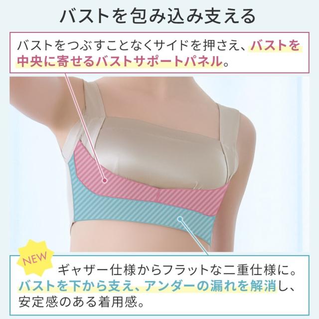 締め付けすぎない着心地と、補正力を両立したノンワイヤー補正ブラです。