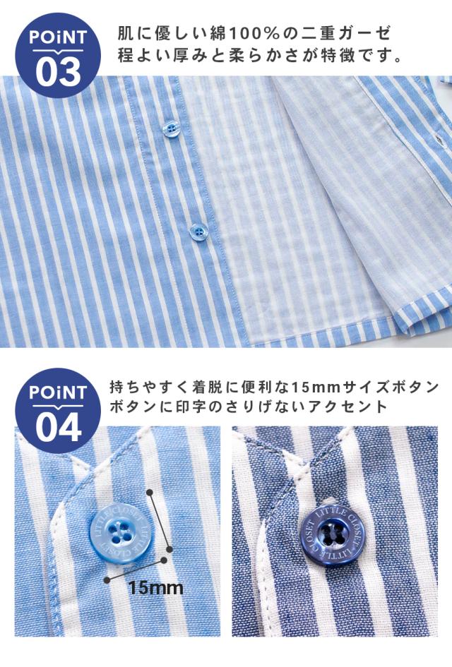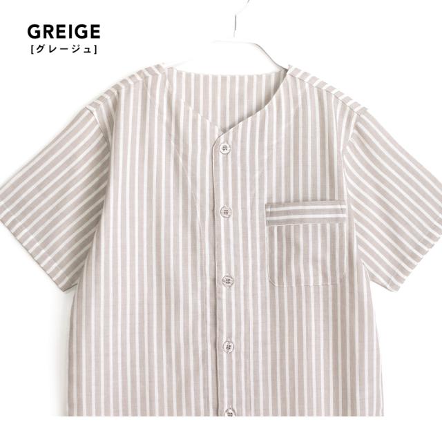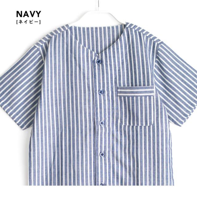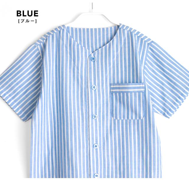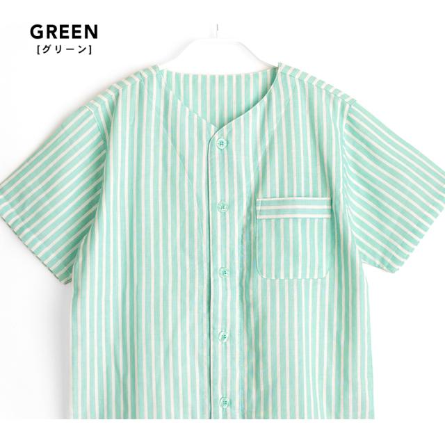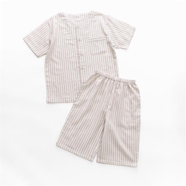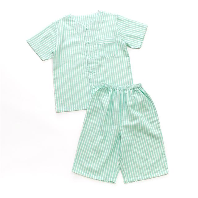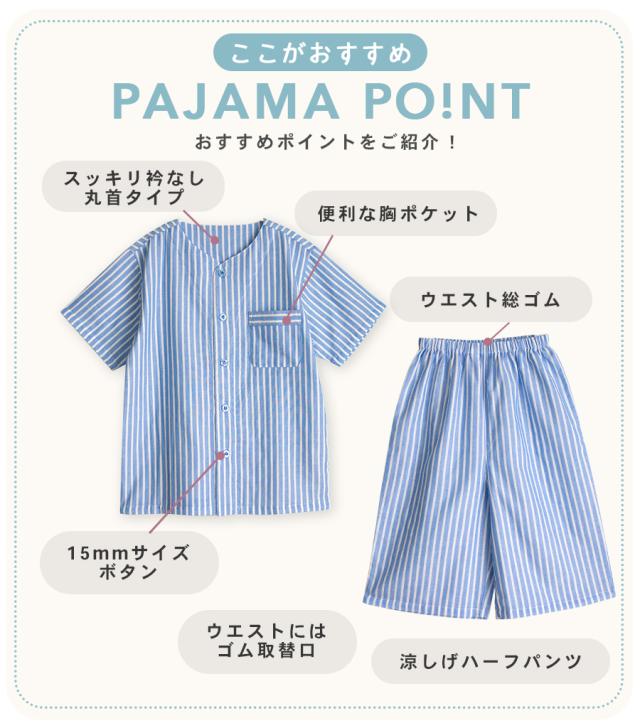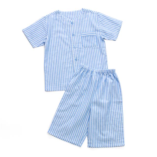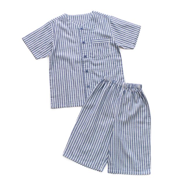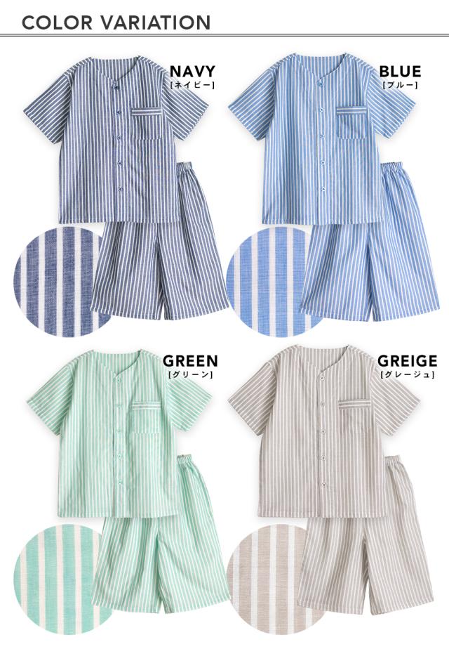 パジャマ キッズ ユニセックス 綿100% ダブルガーゼ 半袖 春 夏 衿なし 前開き ボタン ストライプ ネイビー ブルー グリーン グレージュ 100 110 120 家族 親子 おそろい リンクコーデ 入院 子供 ボーイズ ガールズ ジュニア かわいい メール便なら 送料無料 90354tod