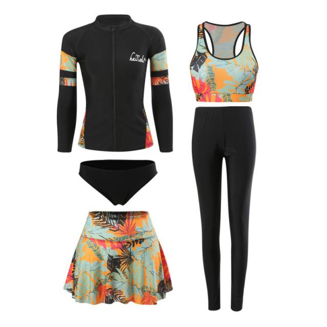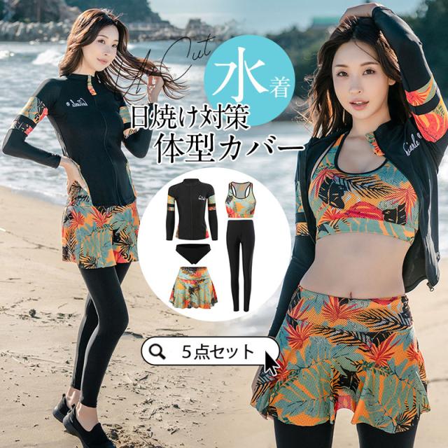 【水曜日まで!10%クーポン配布中】 水着 レディース 40代 50代 体型カバー ラッシュガード 5点セット 長袖 ママ タンキニ水着 フィットネス 大きいサイズ 日