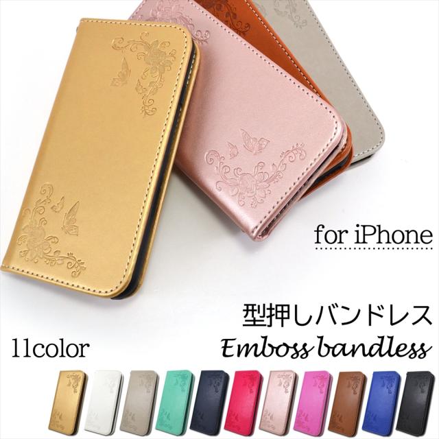 【在庫セール特価】 アウトレット iPhone SE 第3世代 ケース 第2世代 スマホケース 手帳型 型押し ベルトなし バンドレス 花柄 蝶 手帳 大人女子 iphone7 / 8 シンプル エンボス加工 iPhone6 6S Plus かわいい カバー ストラップ付き 手帳型ケース カード入れ スタンド