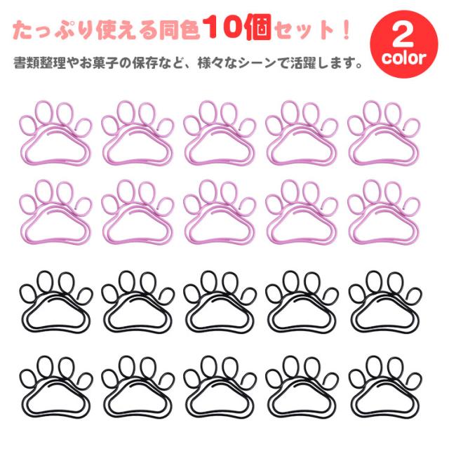 ペーパークリップ 肉球 クリップ 10個入り かわいい おしゃれ アニマル 文房具 動物 書類 整理