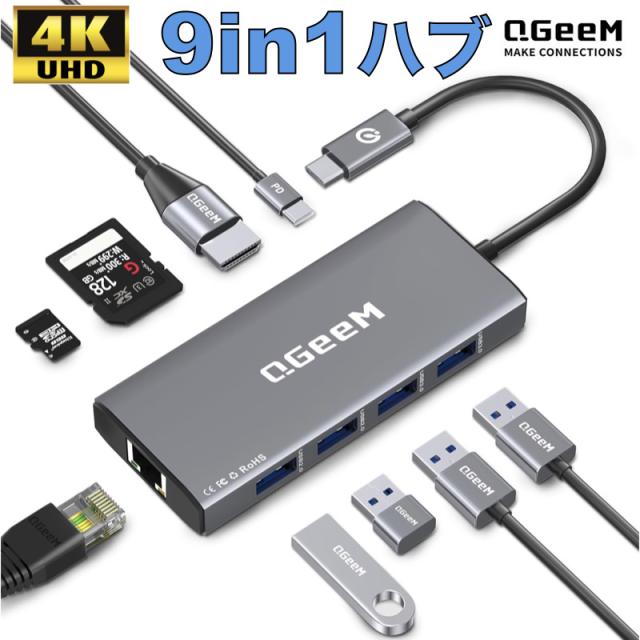 9in1 ハブ USB Type-C USB-C ハブ HDMI 4K USB3.0 SDカードリーダー microSD 有線LAN PD対応充電 LANポート 変換アダプタ ドッキング ステーション ノートパソコン ノートPC MacBook surface iPad Pro iPhone15シリーズ