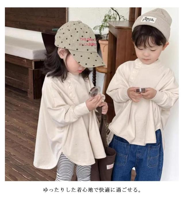 | 90-130cm!ボタン付きTシャツ ゆったりした着心地で快適に過ごせる。 着心地がいい使用感、優しい肌触り、優れた通気性があります。 | |
