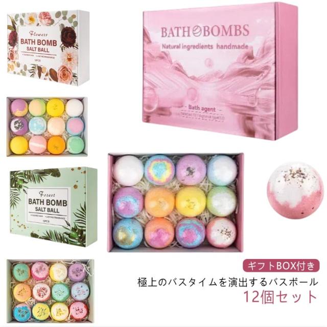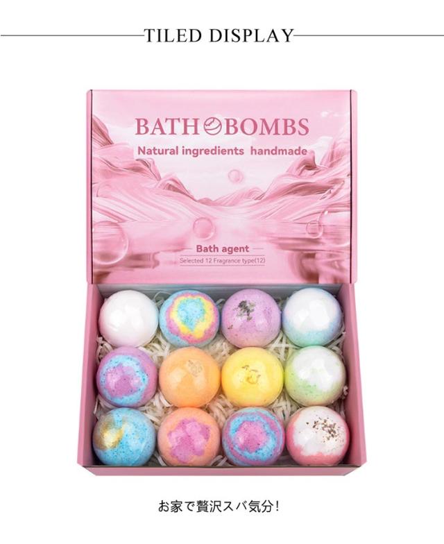 かわいい 12個セット お湯にシュワシュワ溶ける ギフトBOX付き オシャレ 天然成分 カラフル 12個セット 保湿オイル含まれ 香り爆弾 贈り物 大人 女性 男性 バスボール こども お祝い 入浴剤 母の日 誕生日
