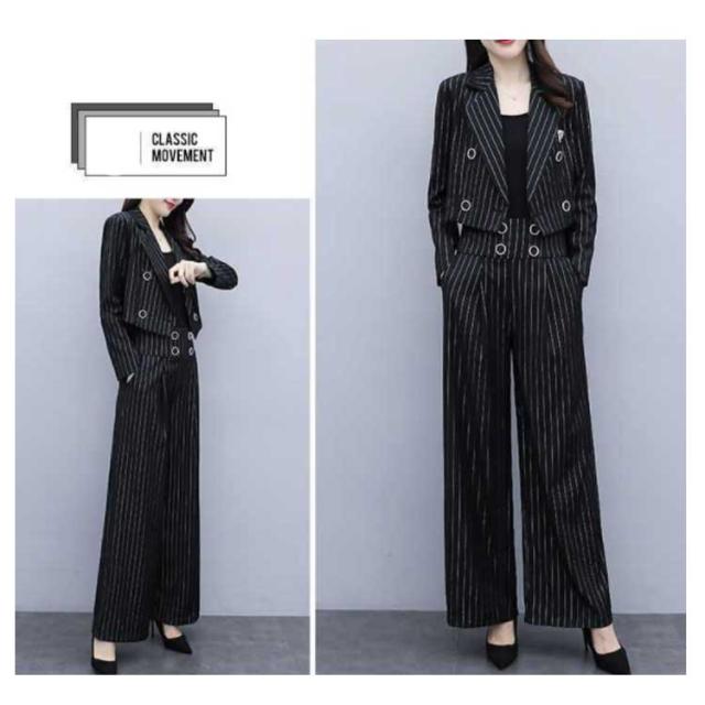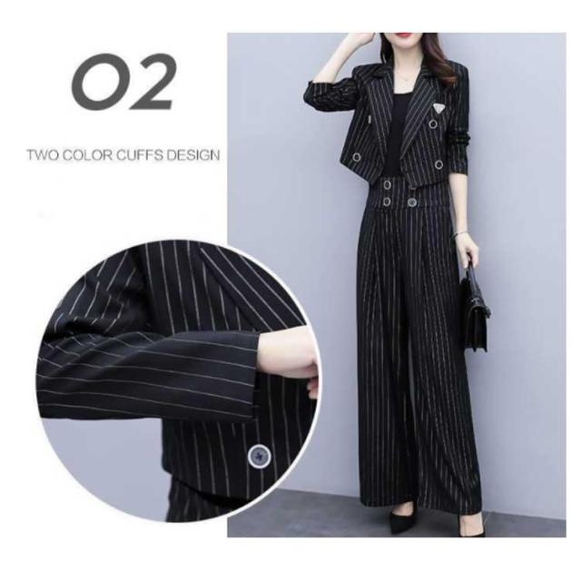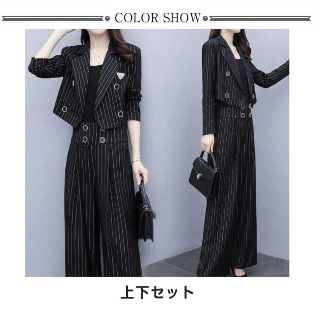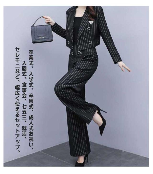 卒業式 2点セット パンツスーツ ストライプ柄 レディース セットアップ スーツジャケット スーツ ガウチョパンツ 50代 テーラードジャケット 秋冬 卒業式 40代 30代 ママ 入園式 セレモニー 大きサイズ 春