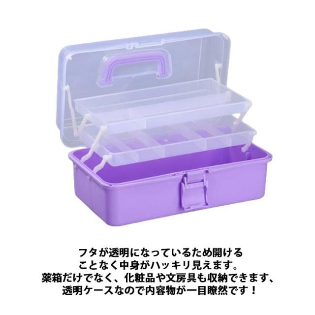 | 3段式設計&仕切りがあるから上手に収納でき!! おしゃれで便利な大容量収納ケース ・軽量のPP素材で環境保護ができて耐久性もあります。長持ちで、防虫、防黴、防湿で、非常に耐久性がある。 ・3層トレーと仕切りで薬類をお好みで分類出来るので欲しい物が一目瞭然。 ・上段は仕切りのあるトレー付きなので、小さなお薬等の小分けに便利です。 ・下段には高さのある瓶やボトルもたっぷり収納できます。 ・フタが透明になっているため開けることなく中身がハッキリ見えます。 ・また、180度開けることができ、隠されたハンドルのデザインは移動や持ち運びが簡単で、万が一急な災害が起きた時でも、慌てることなく対応できます。 ・しっかり閉められるので持ち上げる際にフタが開いて中身が落ちる心配もありません。 ・薬箱だけでなく、化粧品や文房具も収納できます、透明ケースなので内容物が一目瞭然です! ・家族、病院、診療所、アウトドア、事務所など用に、常備薬をまとめてコンパクトに収納出来る救急箱です。 | |