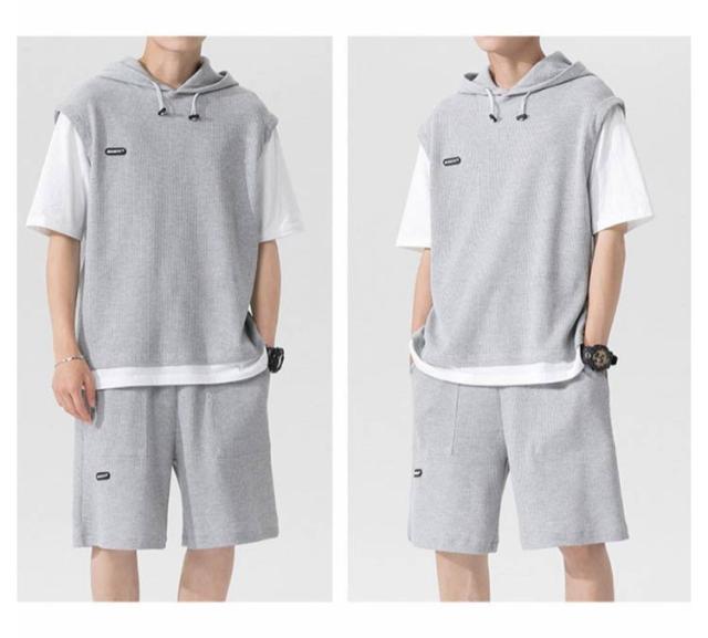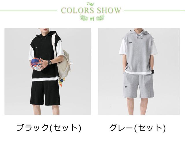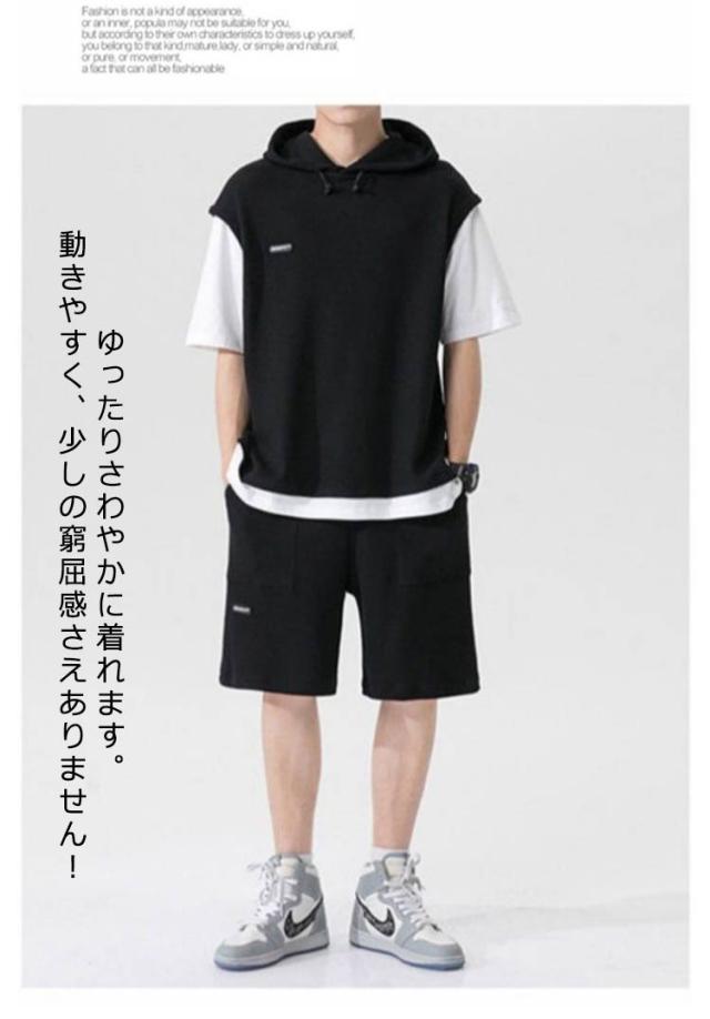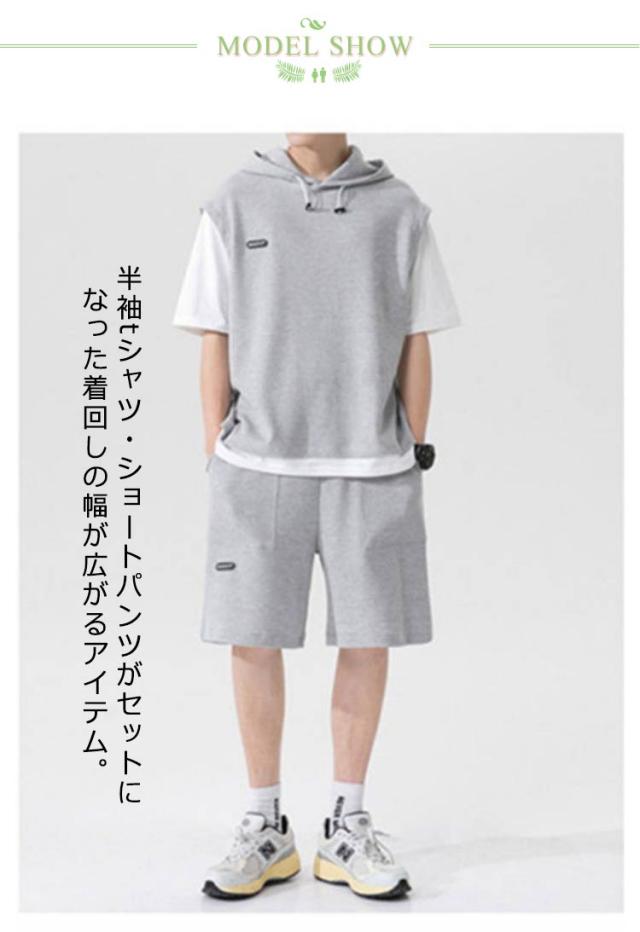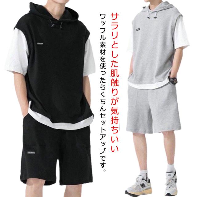 大きいサイズ パーカー スウェット 夏 半袖tシャツ ジャージ 2点セット ハーフパンツ メンズ スポーツウェア ワッフル編み ルームウエア カジュアル 運動着 通気性 上下セット 部屋着 シンプル