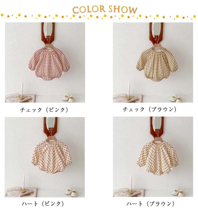 | チェック&ハート 総柄ロンパース ナチュラルな可愛さが届いてすぐに楽しめる♪ 1枚でコーデが完成! | |