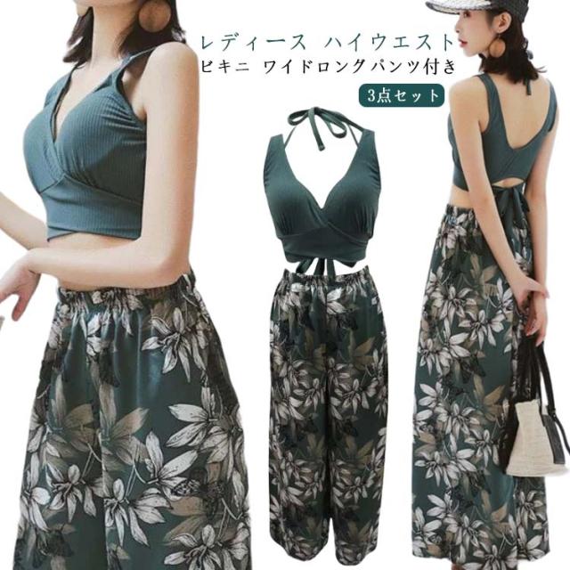 | レディース ハイウエスト ビキニ ワイドロングパンツ付き 安心ショートパンツ、めくれでも露出は抑える。 ビーチ海水浴やプールなどの国内旅行/海外旅行にはもちろん。 | |