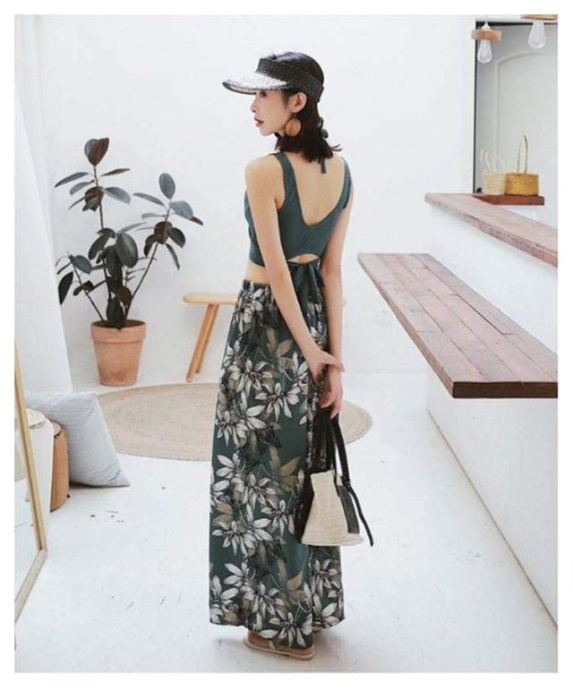 3点セット 体型カバー 体型カバー水着 グリーン バンドゥ お腹 ショーツ一体型 水着 水着 タンキニ ショートパンツ 盛れる 無地 花柄 おしゃれ ビキニ 小胸 カーキ 脚 セクシー お尻 太もも カバーアップ 脚長効果 露出控えめ リブニット水着
