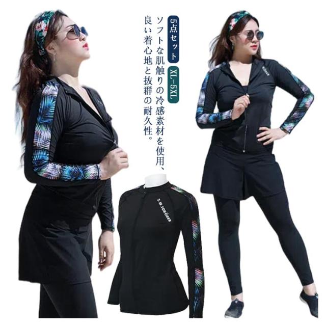 | 5点セット XL-5XL ソフトな肌触りの冷感素材を使用、良い着心地と抜群の耐久性。 ラッシュガードはこだわりにこだわった無地と柄の切り替えラインで、着た瞬間魔法のように細く見えちゃう、着痩せ効果が期待できる。 | |