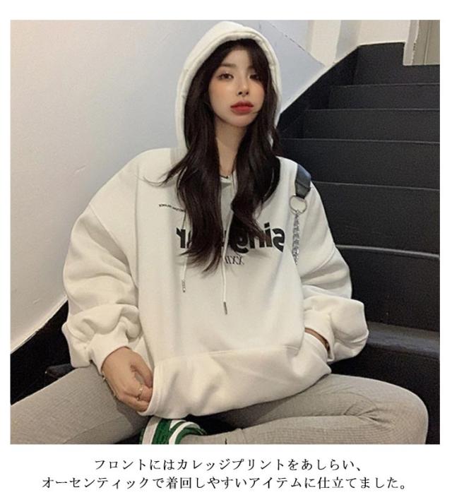 レディース ビッグパーカー 大きいサイズ スエット パーカー ワンポイント オーバーサイズ プルオーバー ビッグシルエット カレッジロゴ スウェット 大きめ トレーナー プルオーバー トップス フーディー ビッグ ドルマン