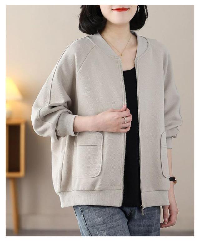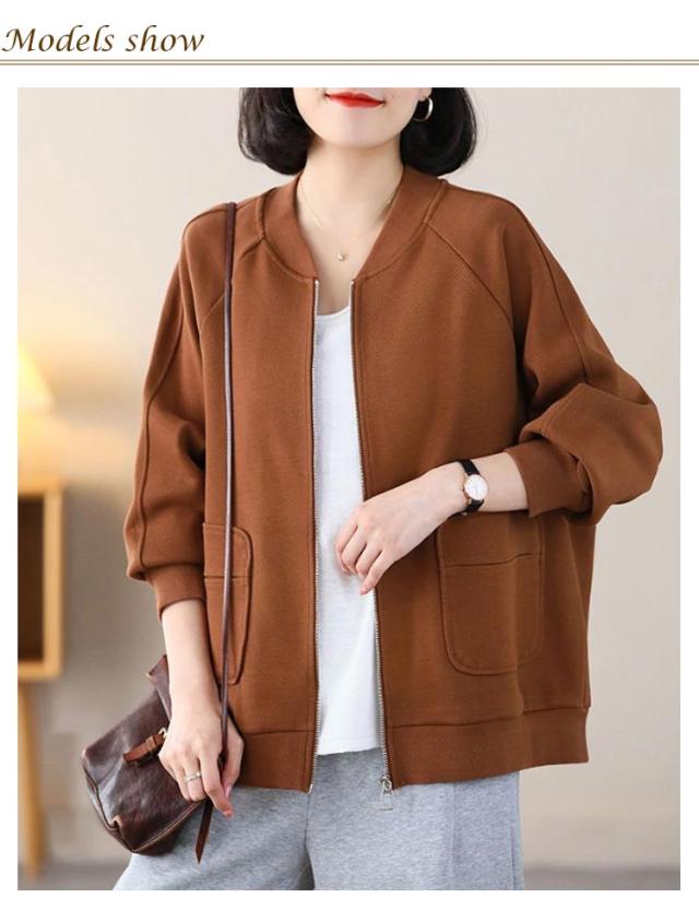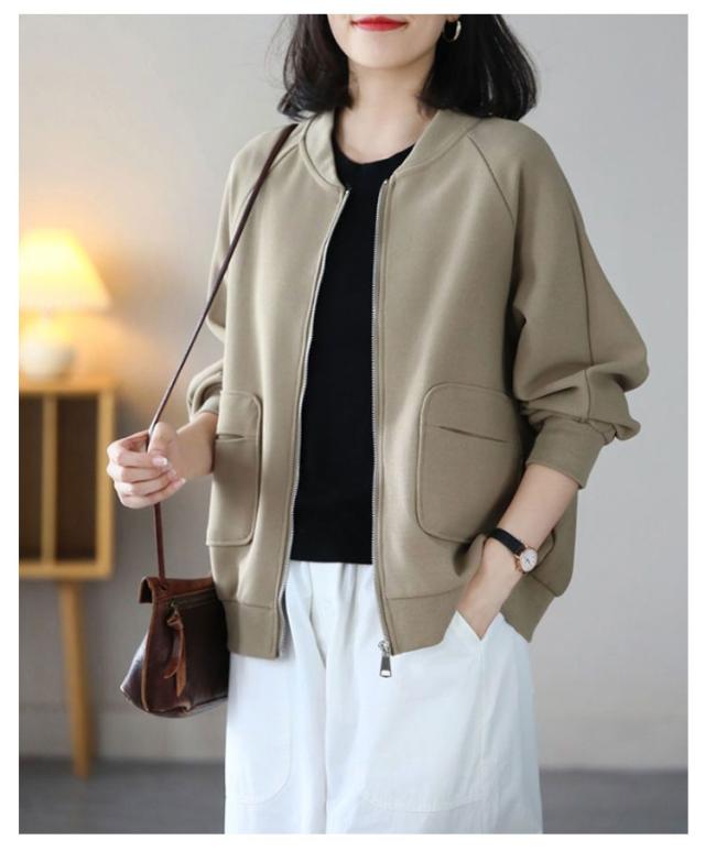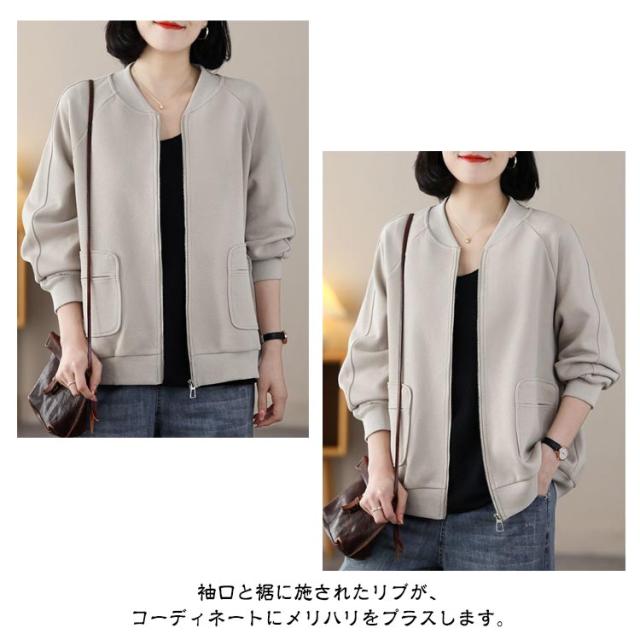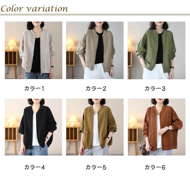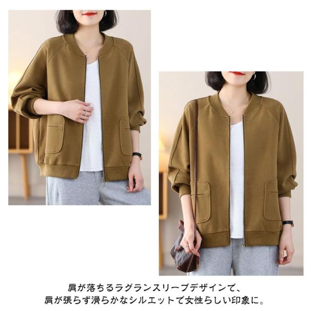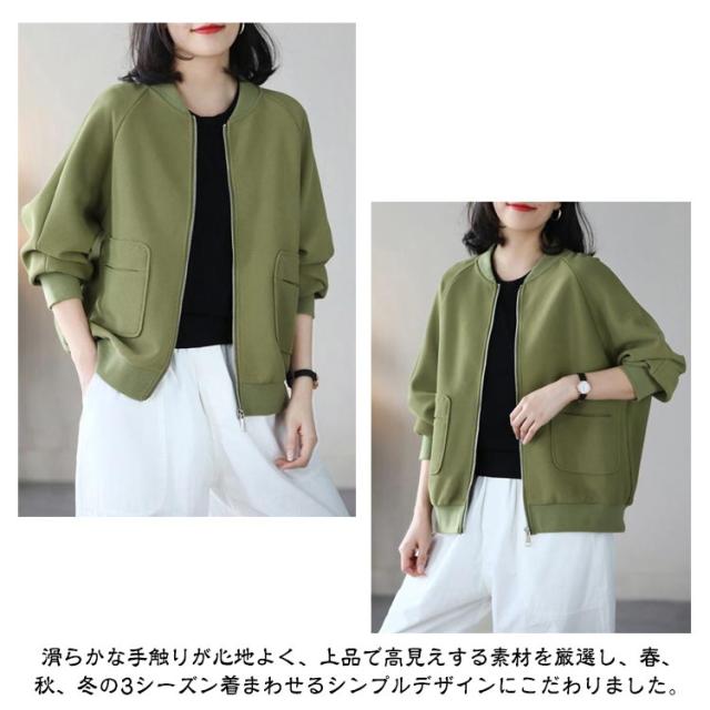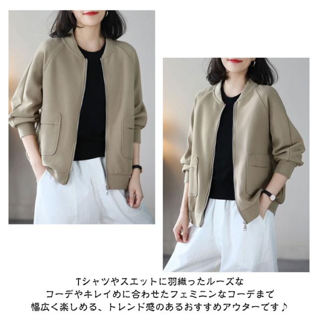 MA-1 長袖 ジャケット ノーカラー ライトアウター レディース ジャンパー スタジャン カーディガン 軽量 羽織り ミリタリージャケット 春 トップス 秋 無地 ラグランスリーブ リブ ゆったり カジュアル 大人 MA-1 通勤 ディリー