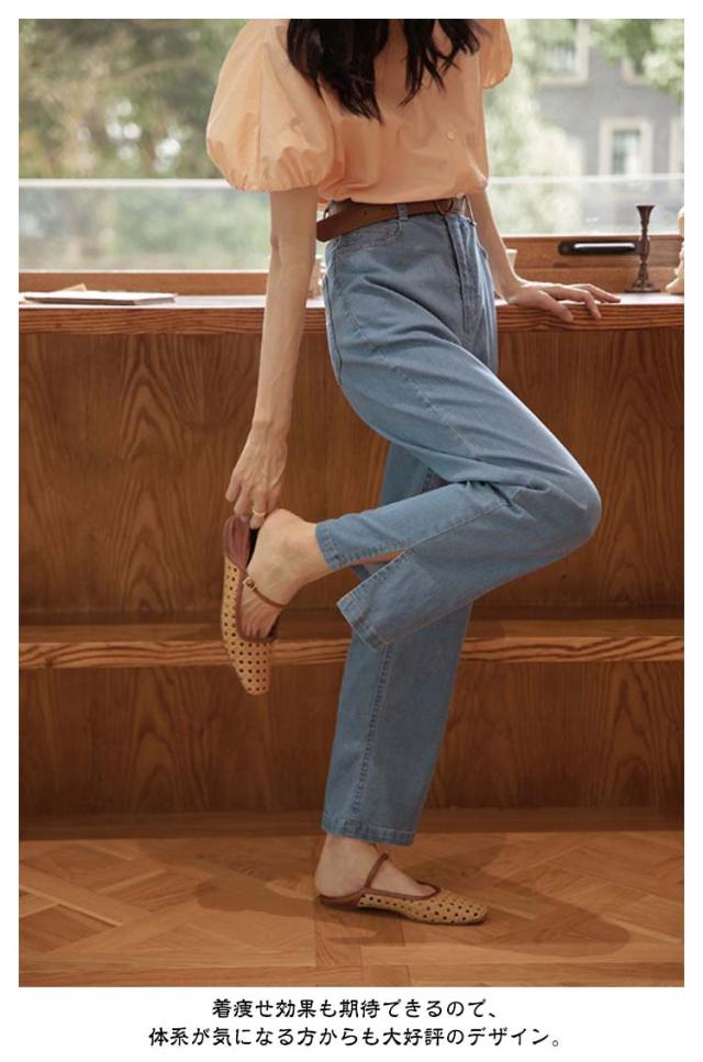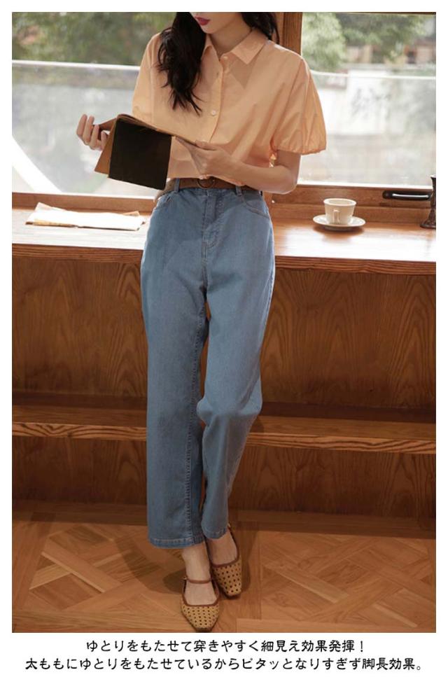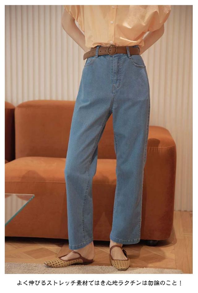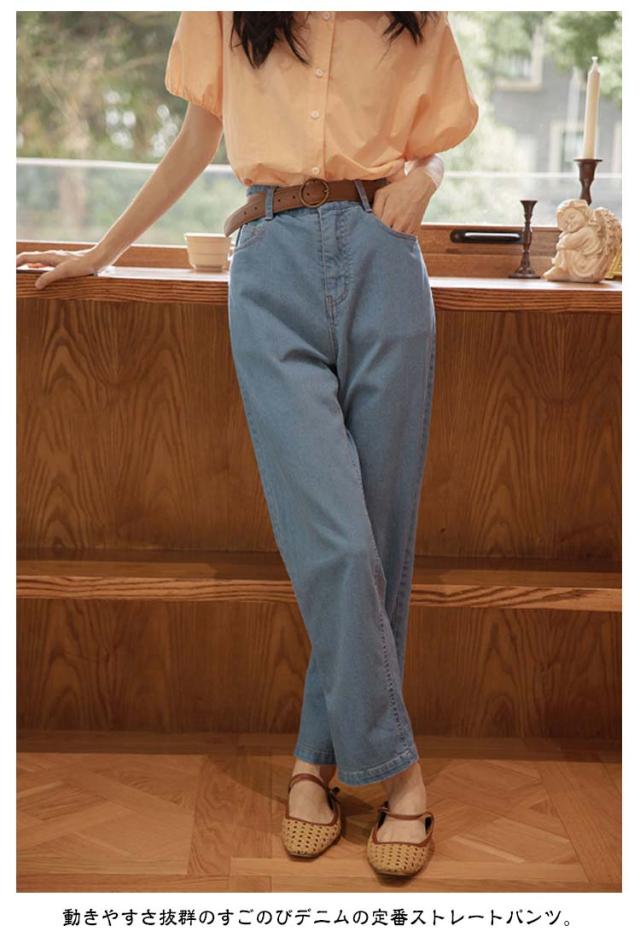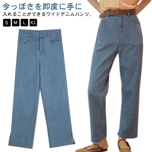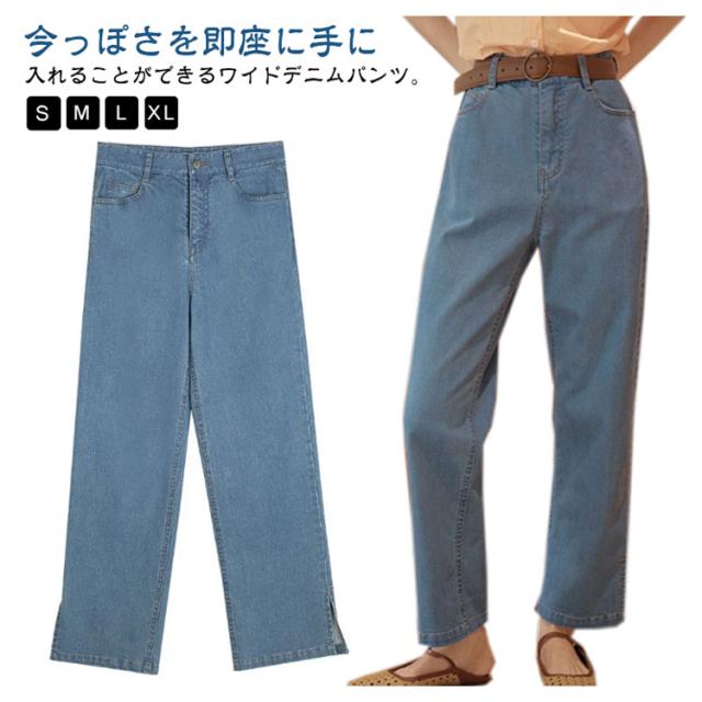 ゆったり デニム ボトム デニムパンツ ストレートデニムパンツ パンツ レディース ワイドパンツ ジーンズ テーパードデニム ストレッチ デニム ジーンズ ジーパン パンツ ストレートパンツ ストレッチ 股上深め ハイウエスト