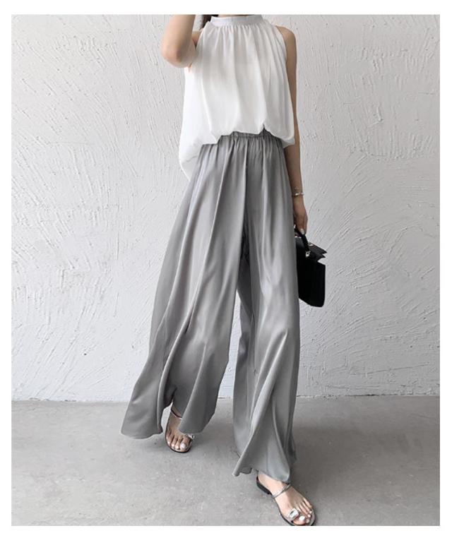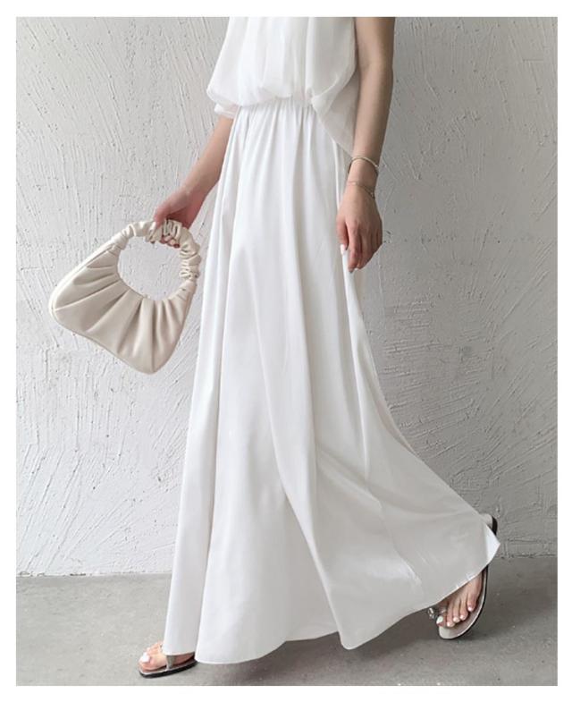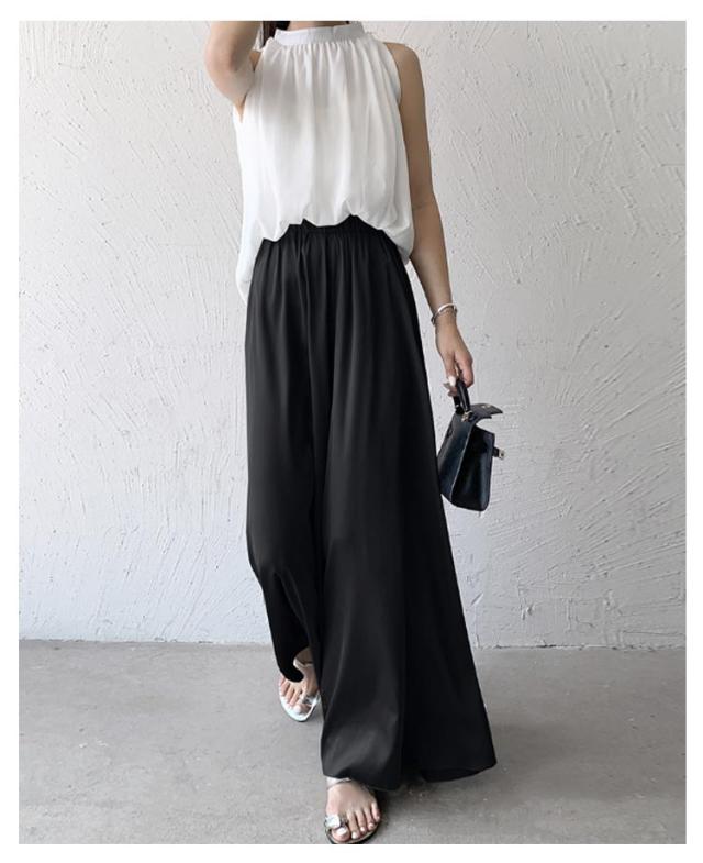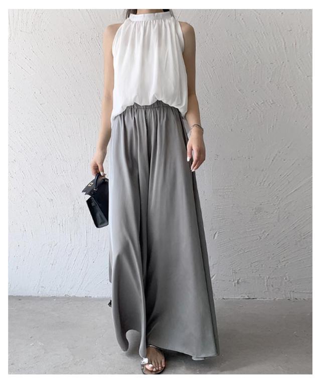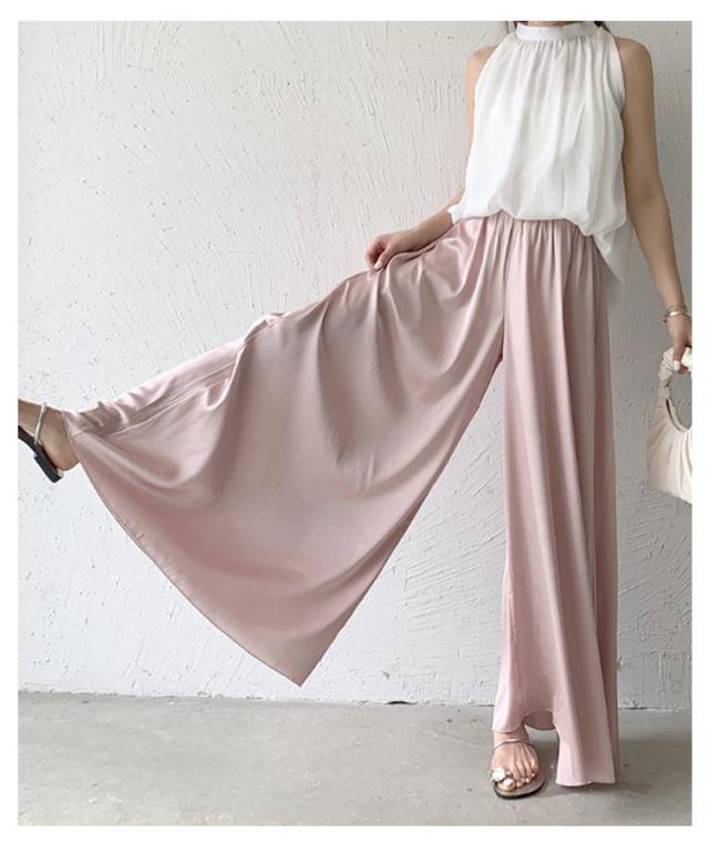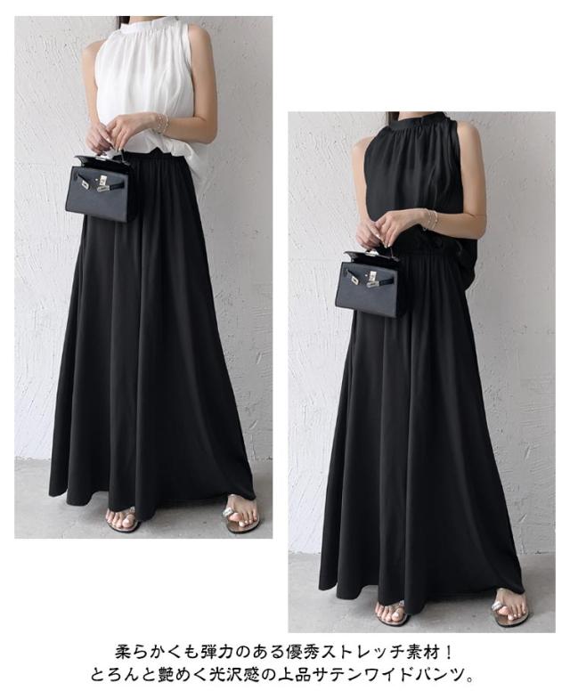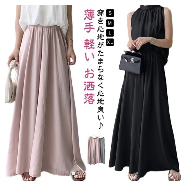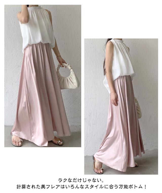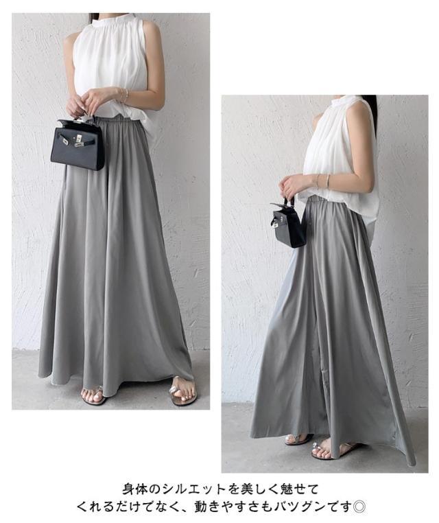スカート風 ウエストゴム ワイドパンツ ロングパンツ ワイドパンツ ゆったりシルエット レディース ワイドパンツ Aライン ガウチョ フレア 美脚 体型カバー とろみ サテン 無地 春 夏 秋 薄手 軽い お洒落 着痩せ 細見え