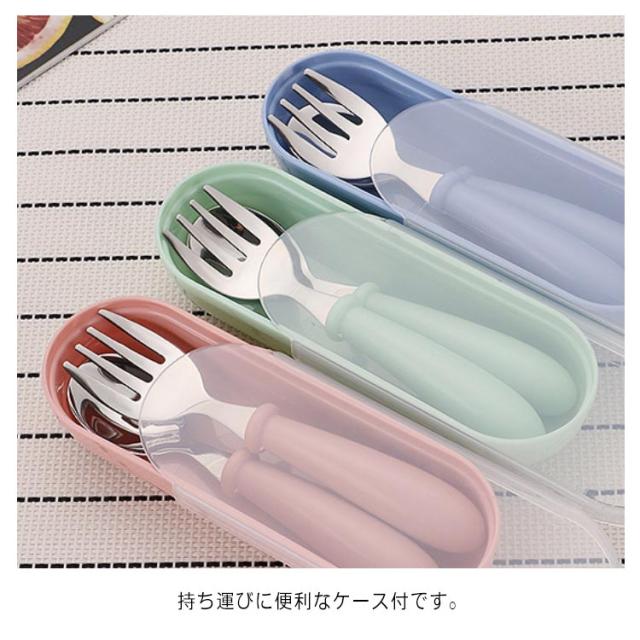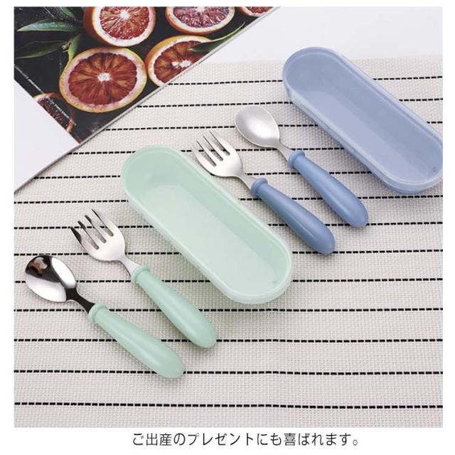 離乳食 スプーン&フォーク セット キッズ ベビー食器 食べやすい ベビー カトラリーセット ステンレス製 握りやすい 子供 ケース付 保育園 幼稚園 小学生 ギフト