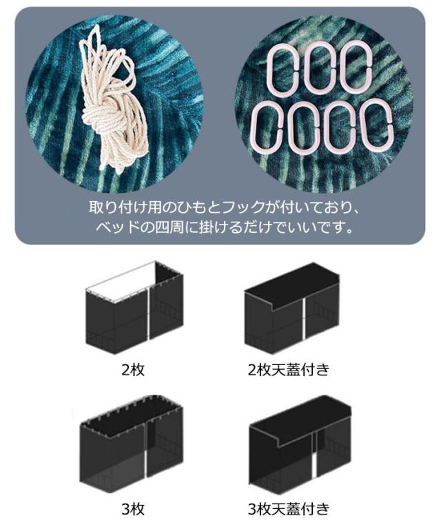 | 全20色 繰り返す利用可能の学生寝室ベッドカーテンです。 2枚が3面を遮る、3枚が4面を遮ることができます。 下段ベッド:2枚のカーテン/上段ベッド:2枚カーテン+天蓋 厚手で遮光性が抜群、快適な睡眠環境を演出してくれます。 取り付け用のひもとフックが付いており、ベッドの四周に掛けるだけでいいです。 | |