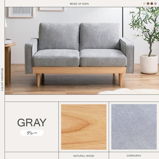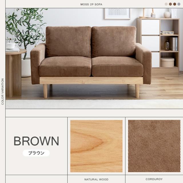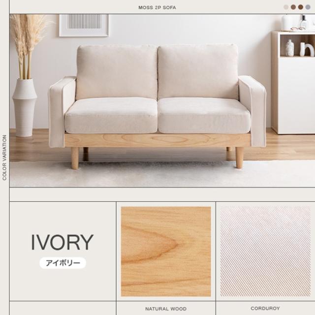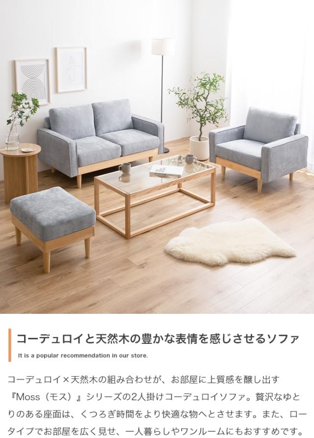 椅子 おしゃれ Moss 2人掛け コーデュロイソファ モダン ナチュラル シンプル シック 天然木 一人暮らし ワンルーム ロータイプ 単品 北欧風 オールシーズン