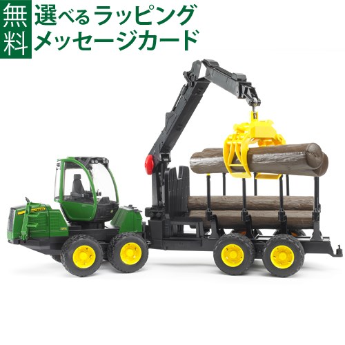 【商品レビューで+2%】Bruder ブルーダー 正規輸入品 ドイツ JD 1210E グラップルクレーン丸太輸送車 丸太4本付き 02133 1/16 ジョンディア ミニカー ごっこ遊び おうち時間 外遊び 子供