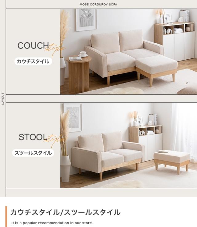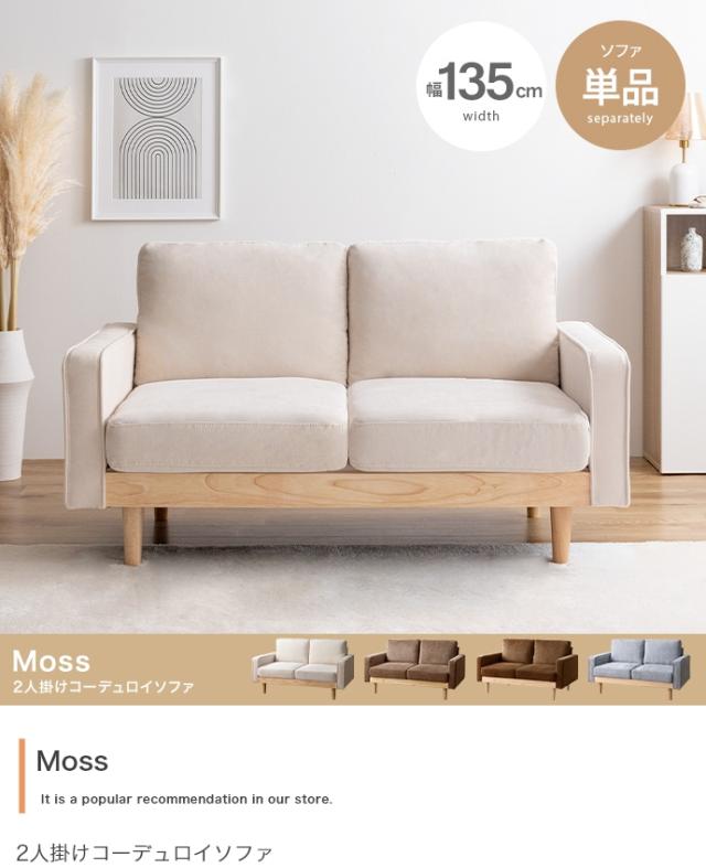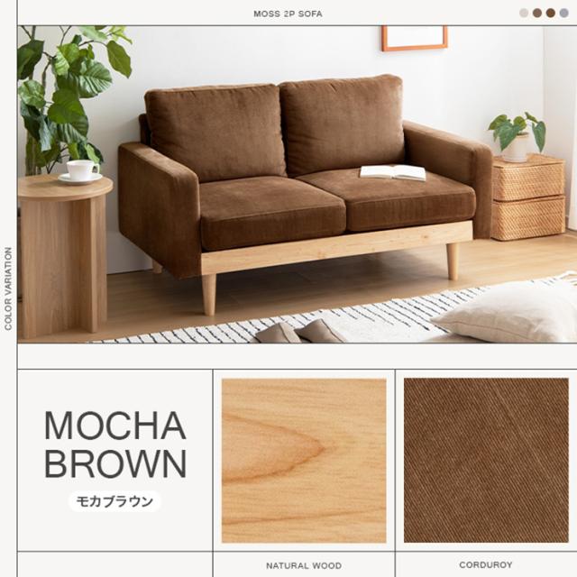 椅子 おしゃれ Moss 2人掛け コーデュロイソファ モダン ナチュラル シンプル シック 天然木 一人暮らし ワンルーム ロータイプ 単品 北欧風 オールシーズン