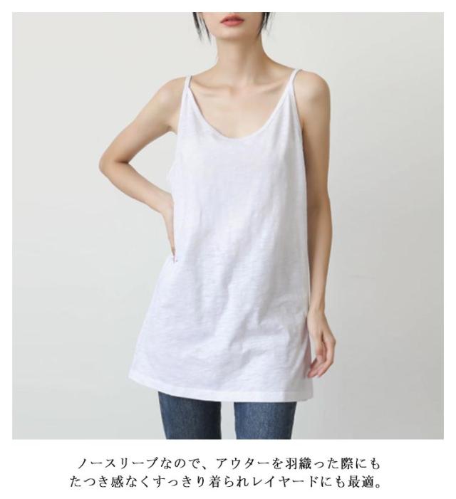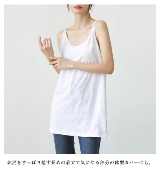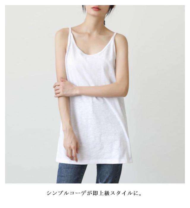 | 着回しやすいキャミソール シンプルコーデが即上級スタイルに。 合わせやすいデザインと素材感で色々なコーデにお使い頂けます。 お尻をすっぽり隠す長めの着丈で気になる部分の体型カバーにも。 ノースリーブなので、アウターを羽織った際にもたつき感なくすっきり着られレイヤードにも最適。 | |