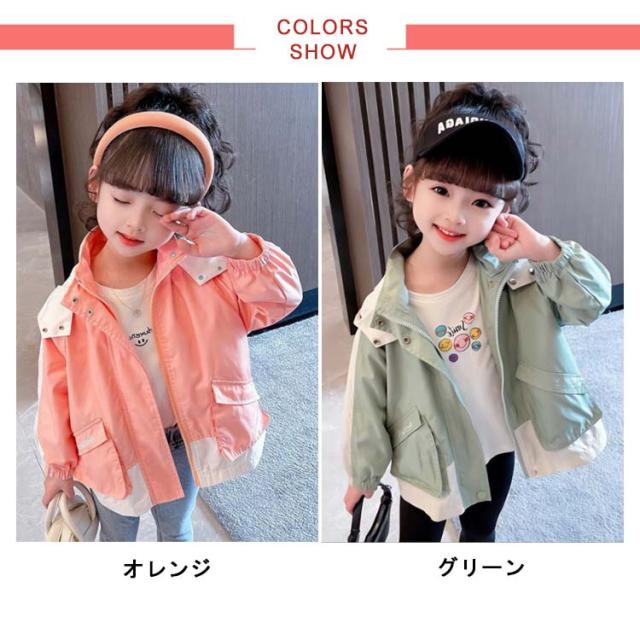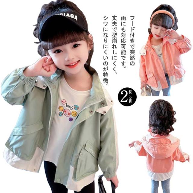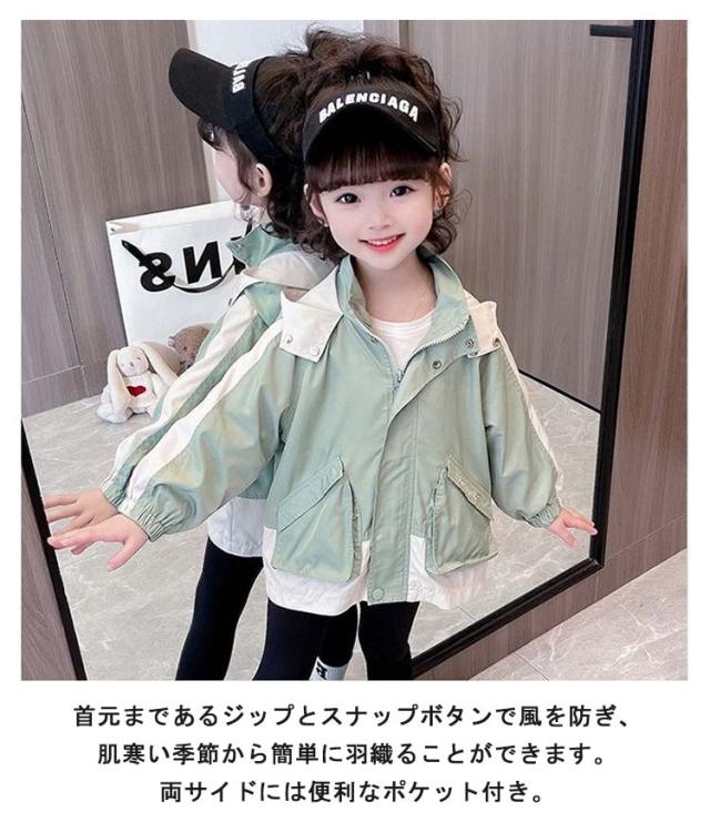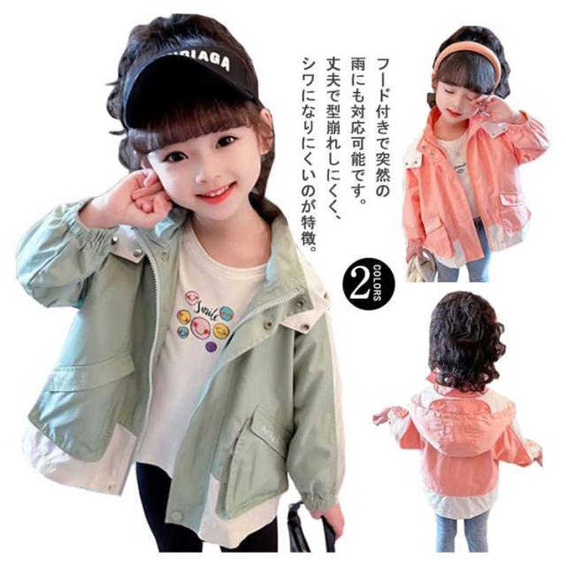 秋 春 子供服 マウンテンパーカー 緑 フード付き アウター 130 マウンテンパーカー ジャケット 撥水 キッズ 防風 キッズ ウインドブレーカー こども 可愛い お洒落 女の子 グリーン トップス 90 100 110 120 ジャンパー