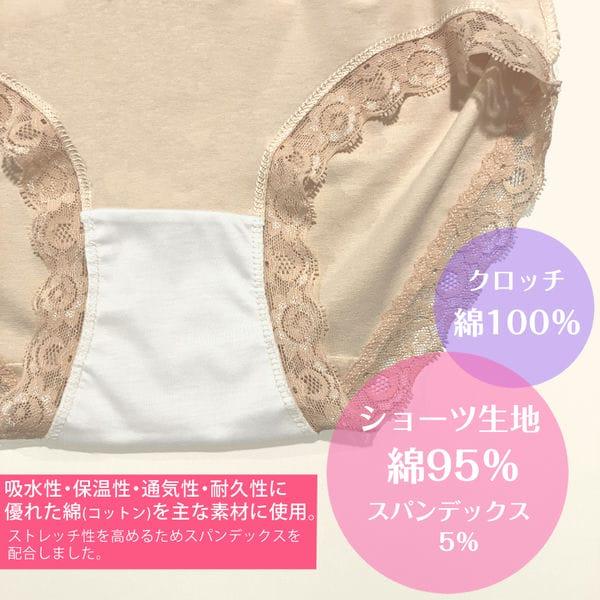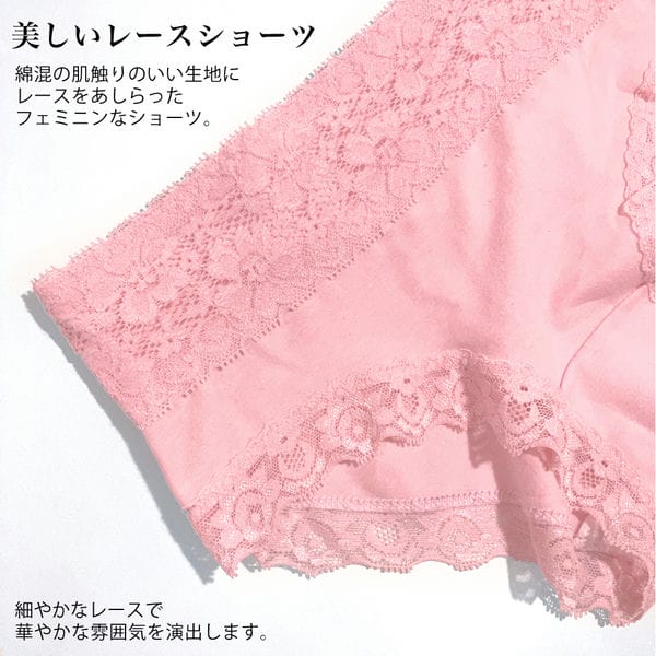 綿混素材の快適な履き心地とレースの華やかさを兼ね備えたショーツです。