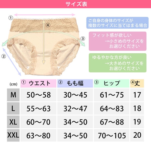 ウエスト:50cm〜58cm/もも幅:30cm〜45cm/ヒップ:61cm〜75cm/丈:17cm