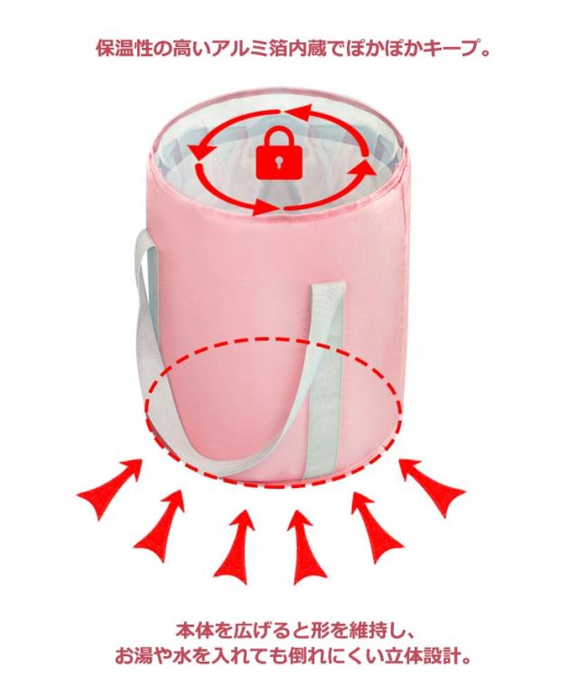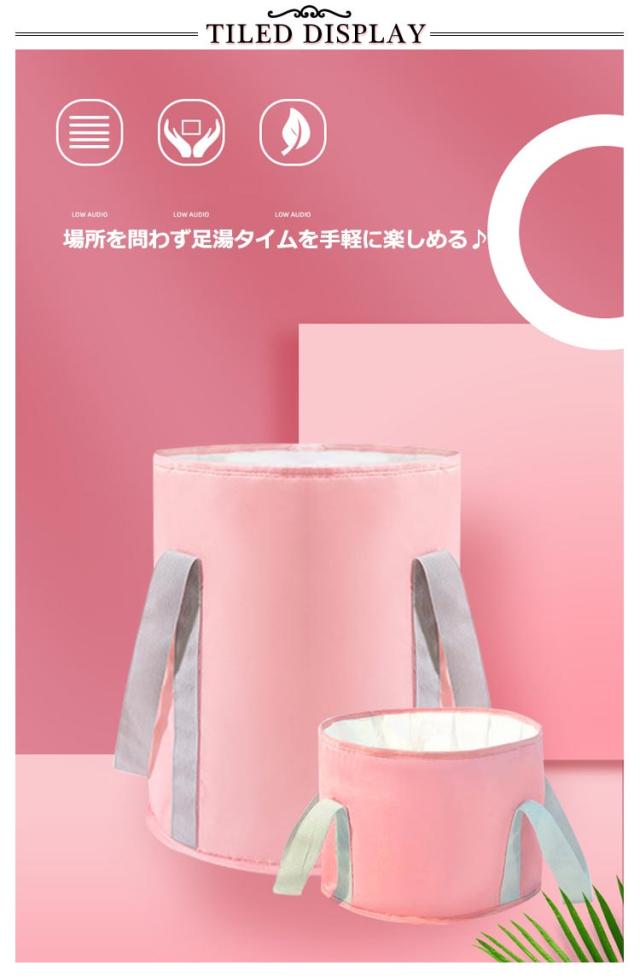 | お家で気軽に足湯が楽しめる折りたたみソフトバケツです。 1日の終わりにご褒美のフットケア♪ 内側は保温効果の高いアルミ箔、底からの冷気を防ぐから保温効果が長く続く。 バケツに入れて衣類を洗うことができます。様々な用途を提案出来ます。 折りたたみ式ですっきり収納!小さく畳んで入れられる収納袋付き、スペースを取らない外出にも便利。 バケツの底にはループも付いているので、水捨てもラクラクです。 | |