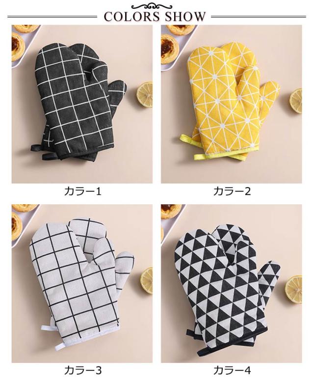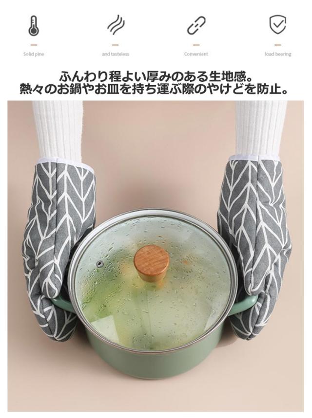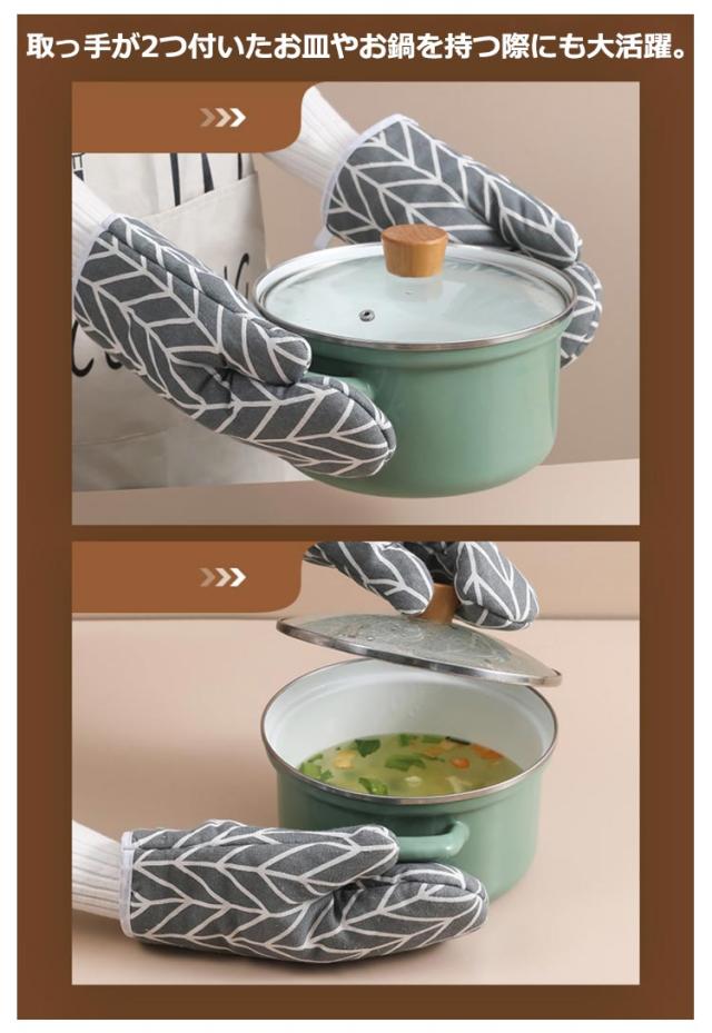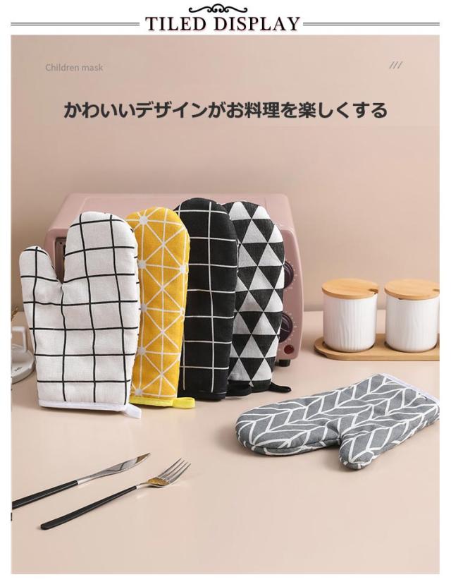 | 北欧風のかわいいキッチン用のミトン。 両手でお鍋を持てるお得な2個セット。 生地は厚手で耐熱なので、しっかり持てて料理中に大活躍です。 手のひら全体をすっぽり包み込んでくれて、フィット感ばっちり。 フックなどに掛けておけば、いつでもサッと取り出しOK。 おしゃれなシンプルな手袋タイプのデザインで母の日のプレゼントにも最適! | |