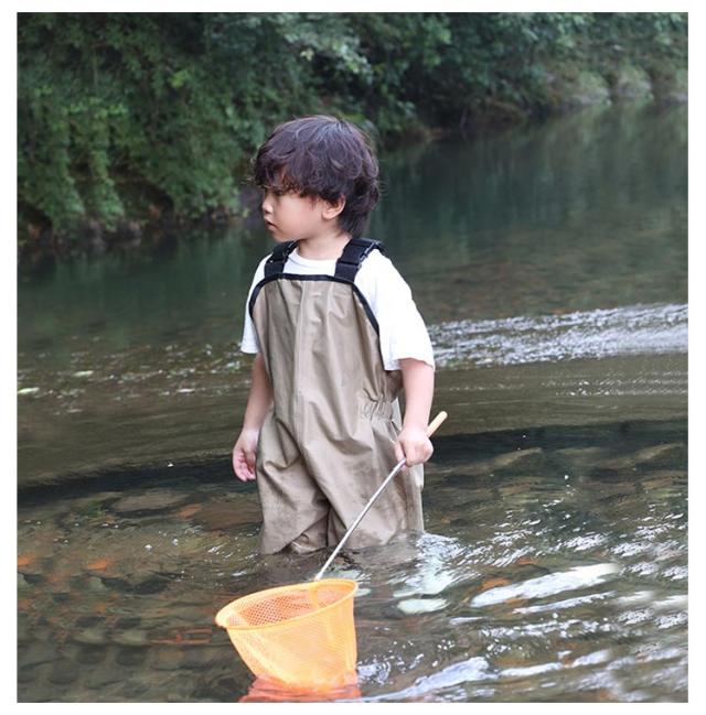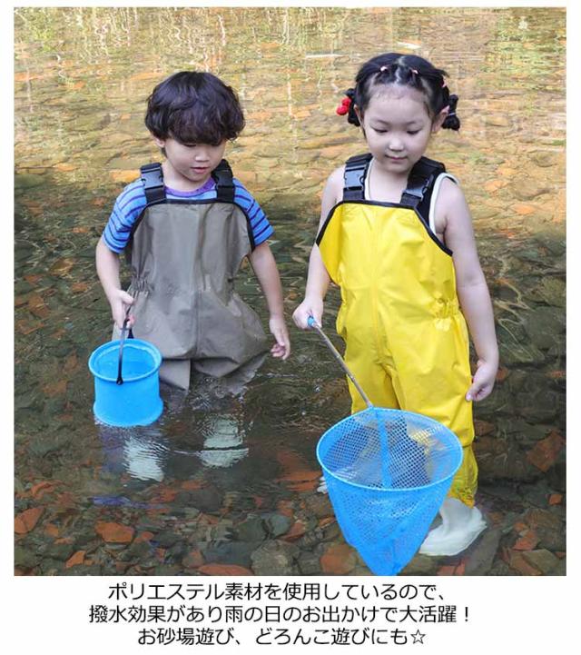 | 泥んこ遊びやお砂場遊びも思いっきりできるプレイウェア! 胸元までしっかりと覆ってお洋服が汚れにくい、安心のオーバーオールタイプ。 雨の日や外遊びに大活躍、汚れを気にせず思う存分遊びましょう♪ 汚れも水もへっちゃらなはっ水機能♪水滴や汚れが付いてもサッと拭き取れてお手入れ楽チン! レインコートの下に着たらレインパンツとしても大活躍。 砂遊び、泥遊びの時や、雨の日のお出掛けにお洋服の上からさっと着せられるから楽々! 元気いっぱい!お砂場遊びの大好きなキッズにおすすめ! | |